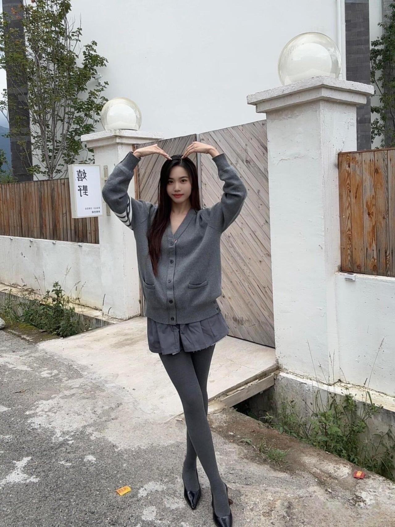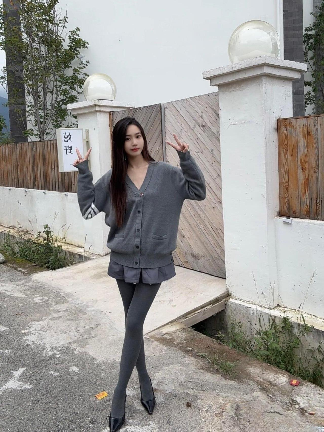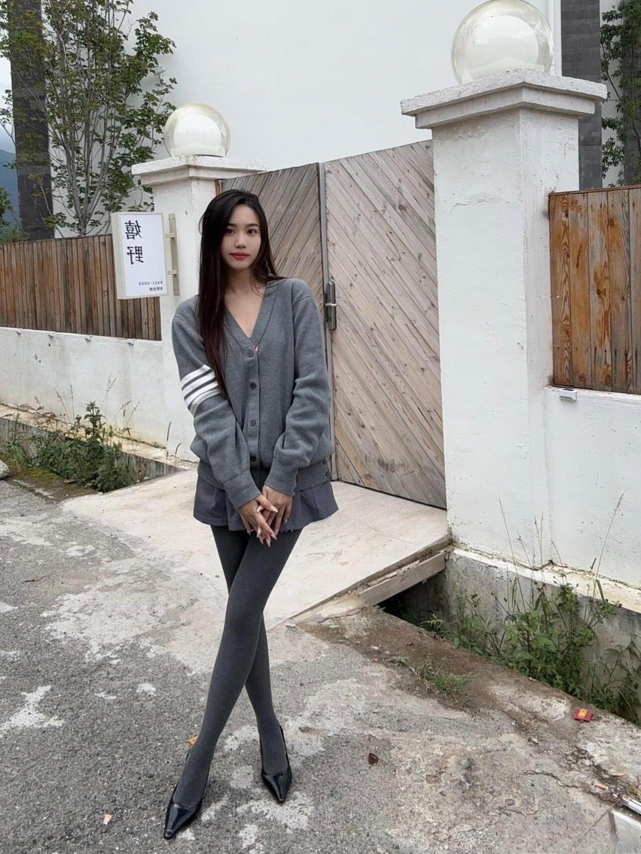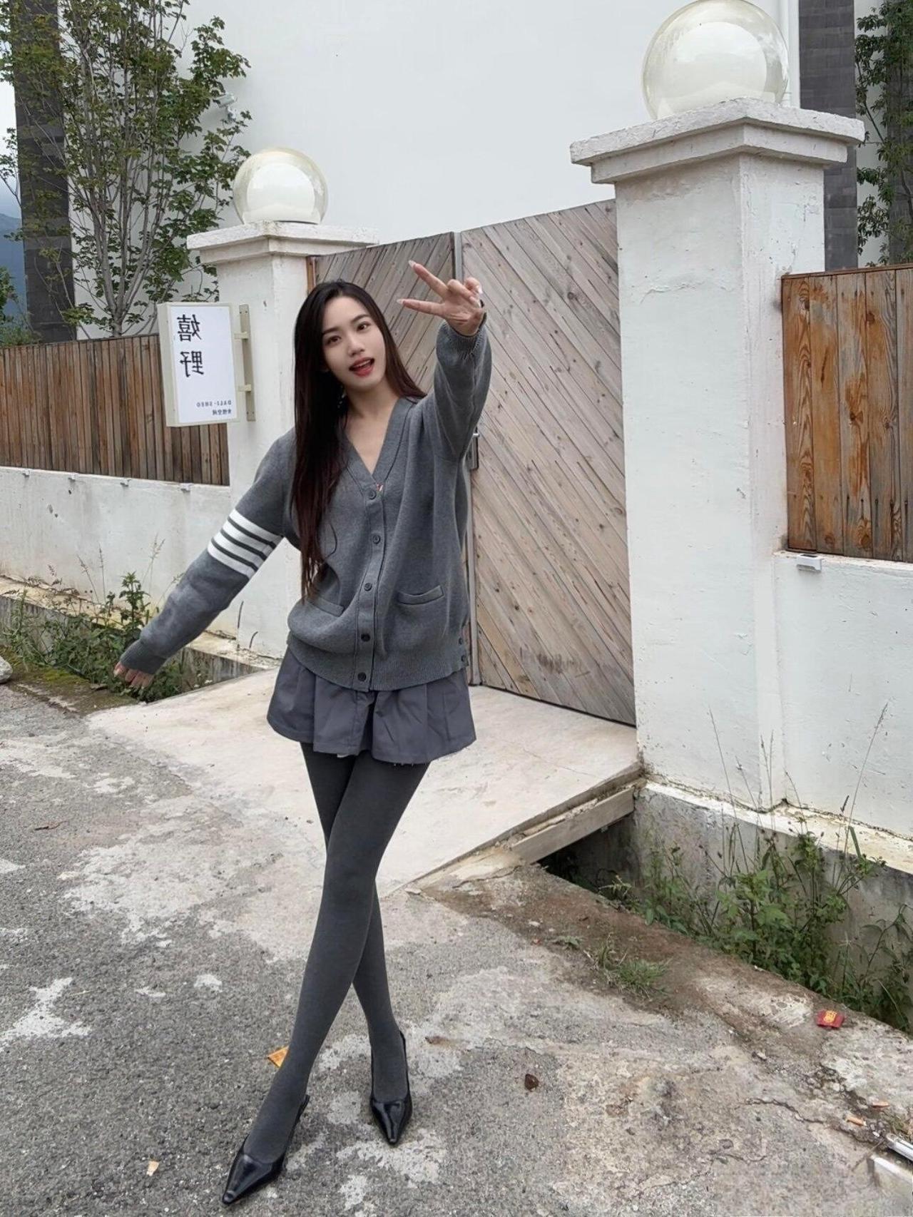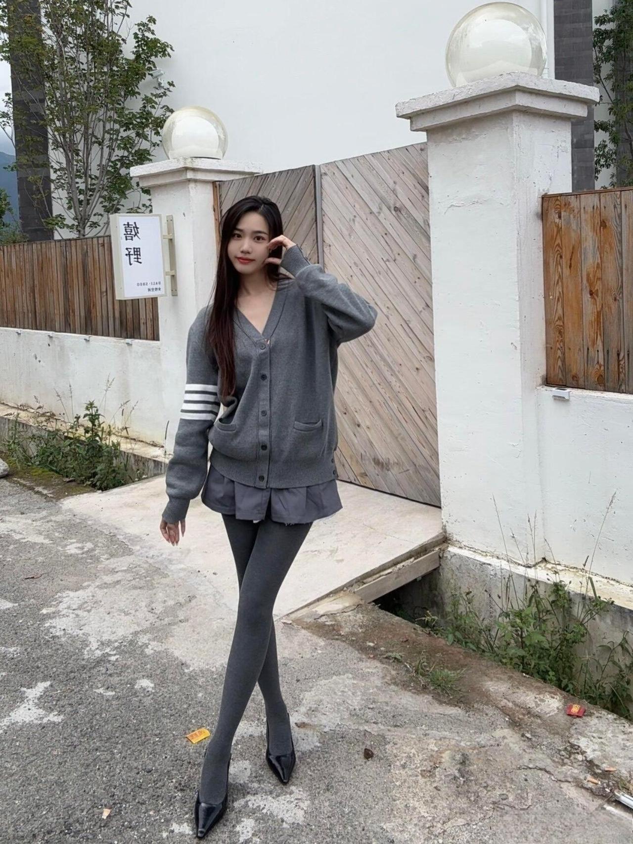 这套同色系穿搭也太有“松弛高级感”了!灰色开衫带点学院风的随性,百褶短裙添了柔美元素,同色丝袜+尖头鞋拉长线条,整体是不费力的温柔休闲风。灰色针织穿搭 高级灰色穿搭
