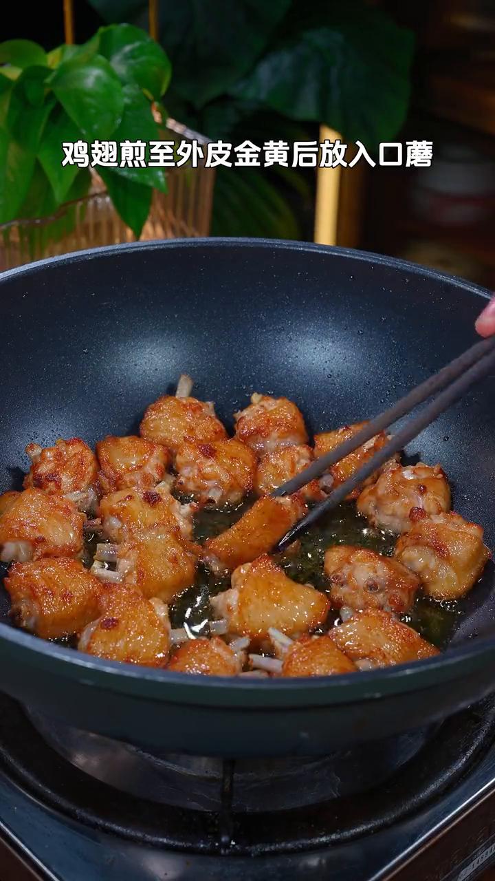 口蘑鸡翅。 孩子最近不喜欢吃饭,我就给他做他最喜欢吃的口蘑鸡翅。鸡翅的肥美和口蘑的鲜香相结合,一口下去简直是舌尖的盛宴,孩子现在自己就能吃一大盘。 ·首先把地里长的鸡翅对半切开,方便炒熟和入味,搭配上口蘑口感更丰富。 ·鸡翅放上姜、葱、料酒去腥提香,半杯生抽、些许蚝油,抓拌均匀后先腌制5分钟入味,再放入一勺淀粉继续抓拌,这是鸡翅肥美多汁的关键。 ·油热放入鸡翅,鸡翅煎至外皮金黄后放入口蘑,用铲子翻炒均匀,口蘑汁水会被鸡翅完全吸收,这样做出来的鸡翅更加鲜美好吃。 ·再倒入黄瓜丰富口感,撒入一些大蒜、盐,最后翻炒几下即可出锅。 肥美的鸡翅吸满口蘑的汁水,一口下去满满的幸福感,喜欢你也做起来吧!
