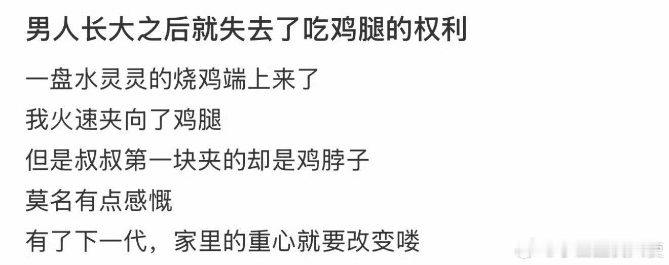 男人长大后就失去了吃鸡腿的权利