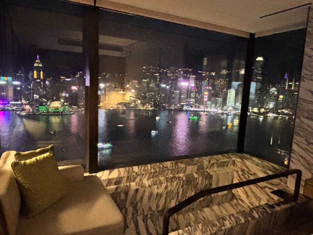 🔹47000积分/晚 兑换➕套房券升级 🔹正常入住5000-6000/晚 —————— 🔸交通 🚌机场直接大巴A21过来,【弥敦道中间道】下车,地铁要换乘反而麻烦 🛳️天星小轮坐到对岸,去坐摩天轮🎡 🚇 尖沙咀地铁口的L1和K出口,正对着酒店大堂 🔸设施 Checkin 在15楼,2025新开的酒店,一线【维多利亚海景】 🛁房间私密性有待改善 泡澡的浴缸,隔壁房间都能看到 📻Tivoli音质超赞 tb看了一下,大约5000多 🔸周边 楼下就是维多利亚的星光大道 2分钟能走到【重庆森林】(重庆大厦),里面挺有意思,就是大陆的菜市场,换成了印度🇮🇳人…… 🔸酒廊happyhour 其实没有行政酒廊,也不算happy hour。他们叫【社交时光 】17:00-18:00。(图12、13) 在15楼的酒吧,不分会员,所有入住的都可以享受,干白和干红两种酒精饮料,还有红色果汁很好喝,算是畅饮吧。小吃只有小碟,不够塞牙缝(如图),我多嘴问了一句吧台坚果是否是免费,她吓得赶紧收起来,生怕这个大陆仔直接吃了不认账… 完全不属于happyhour。但是吧,金普顿本来就不设酒廊,还要啥自行车啊?