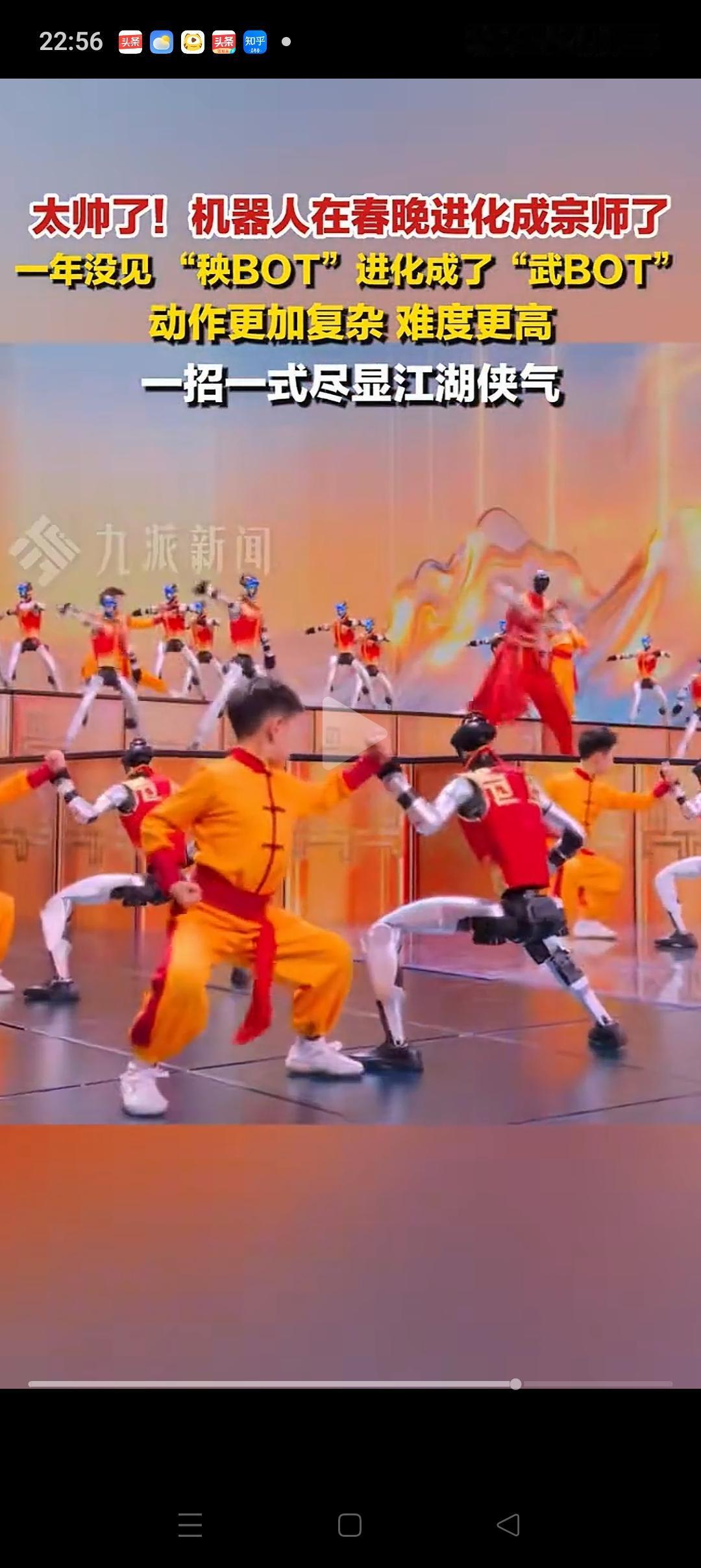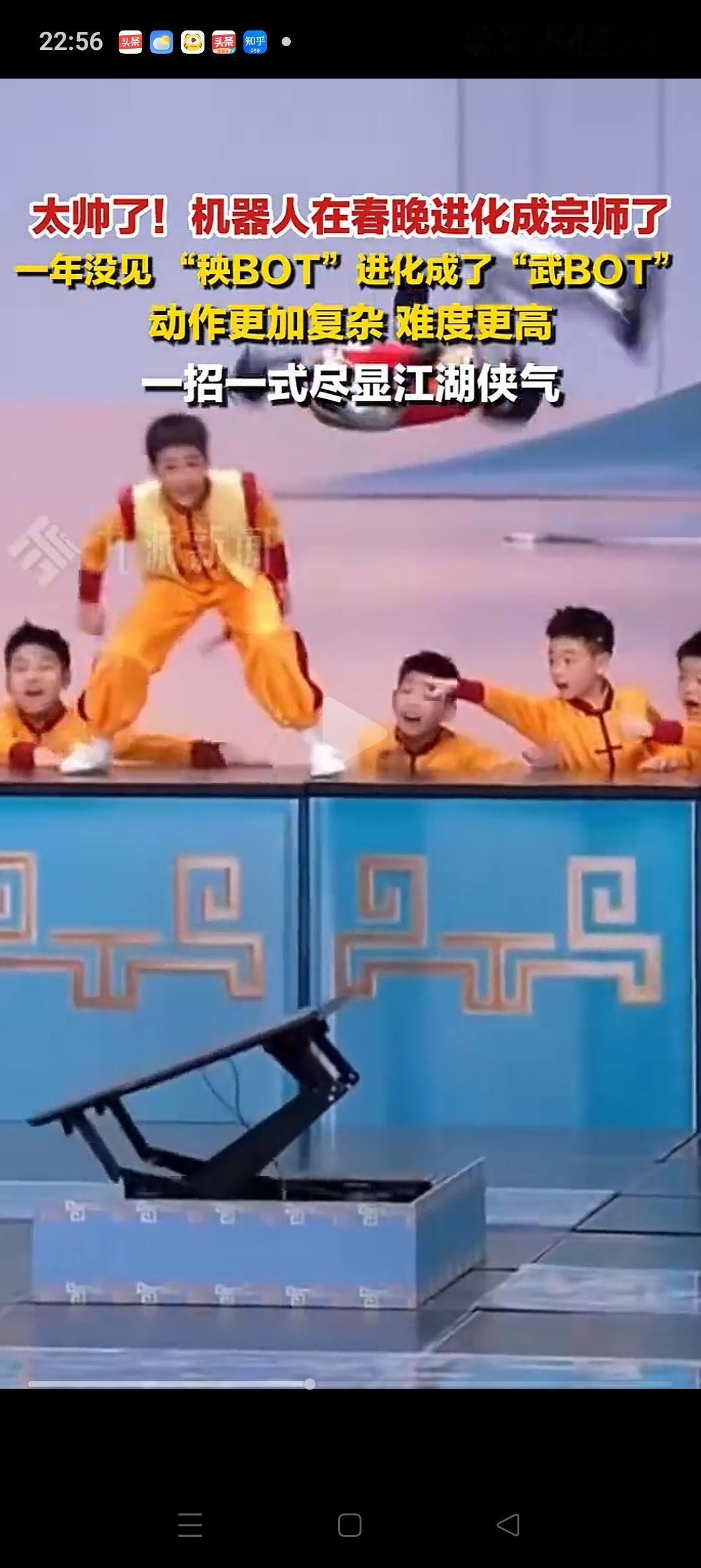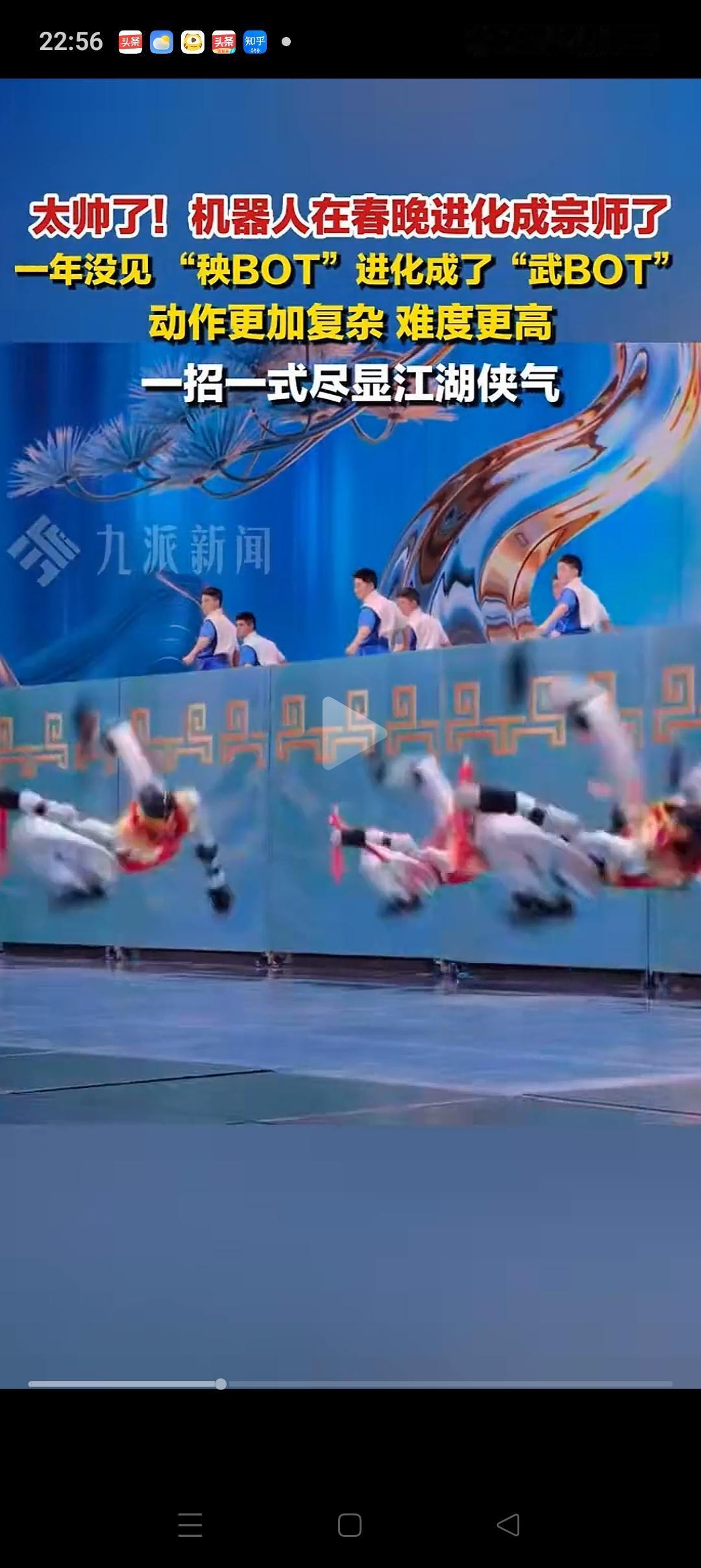 燃炸!春晚宇树机器人直接秀翻全场,国产制造实力太硬核[玫瑰][玫瑰]。 以前你们还能说机器人只能丢丢手绢,要推着走,用遥控器操作。今年还能怎么说? 短短的一年,就能跳马,倒退跳高,翻滚,耍棍子,井井有条的,一点点迟钝都没有,真的是把表演效果拉满。 网友的一句调侃很有意思[耶]:去年还只是会走路的宝宝,今年已经是武术大师了。 这样的宇树值得期待,这样的中国制造值得期待[赞][赞]