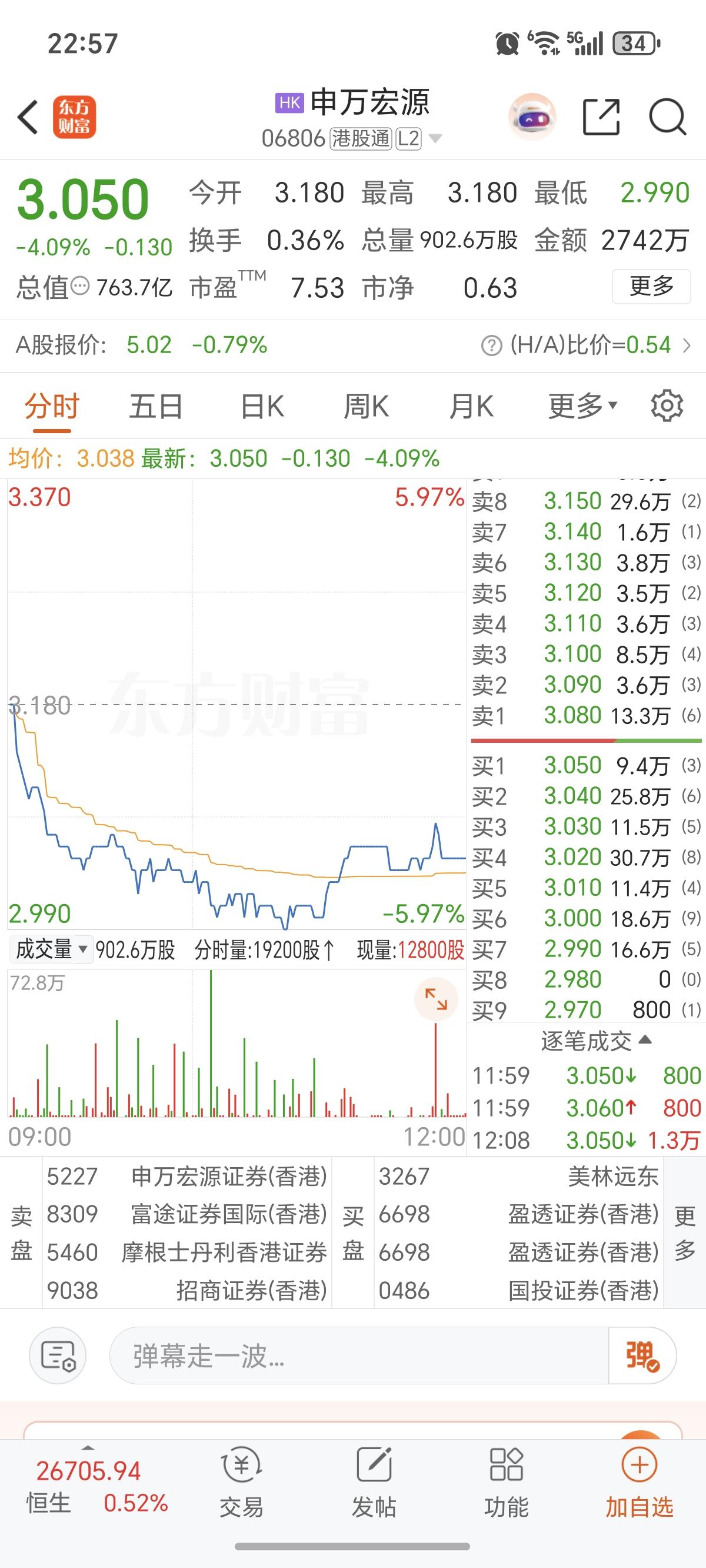 港股开盘:券商股大跌! 再叠加天风证券,财通证券和财通证券利空消息,节后券商股