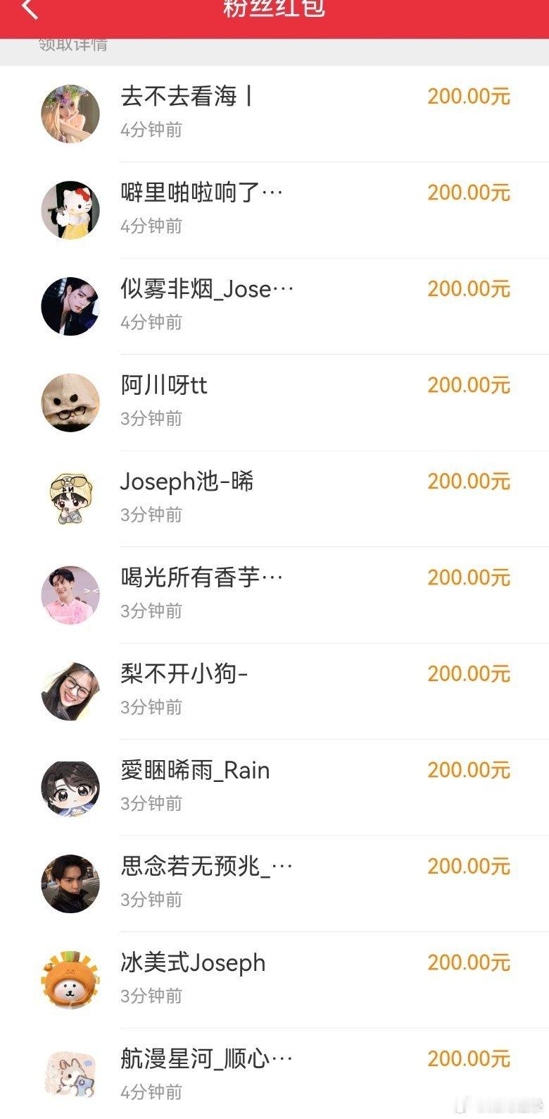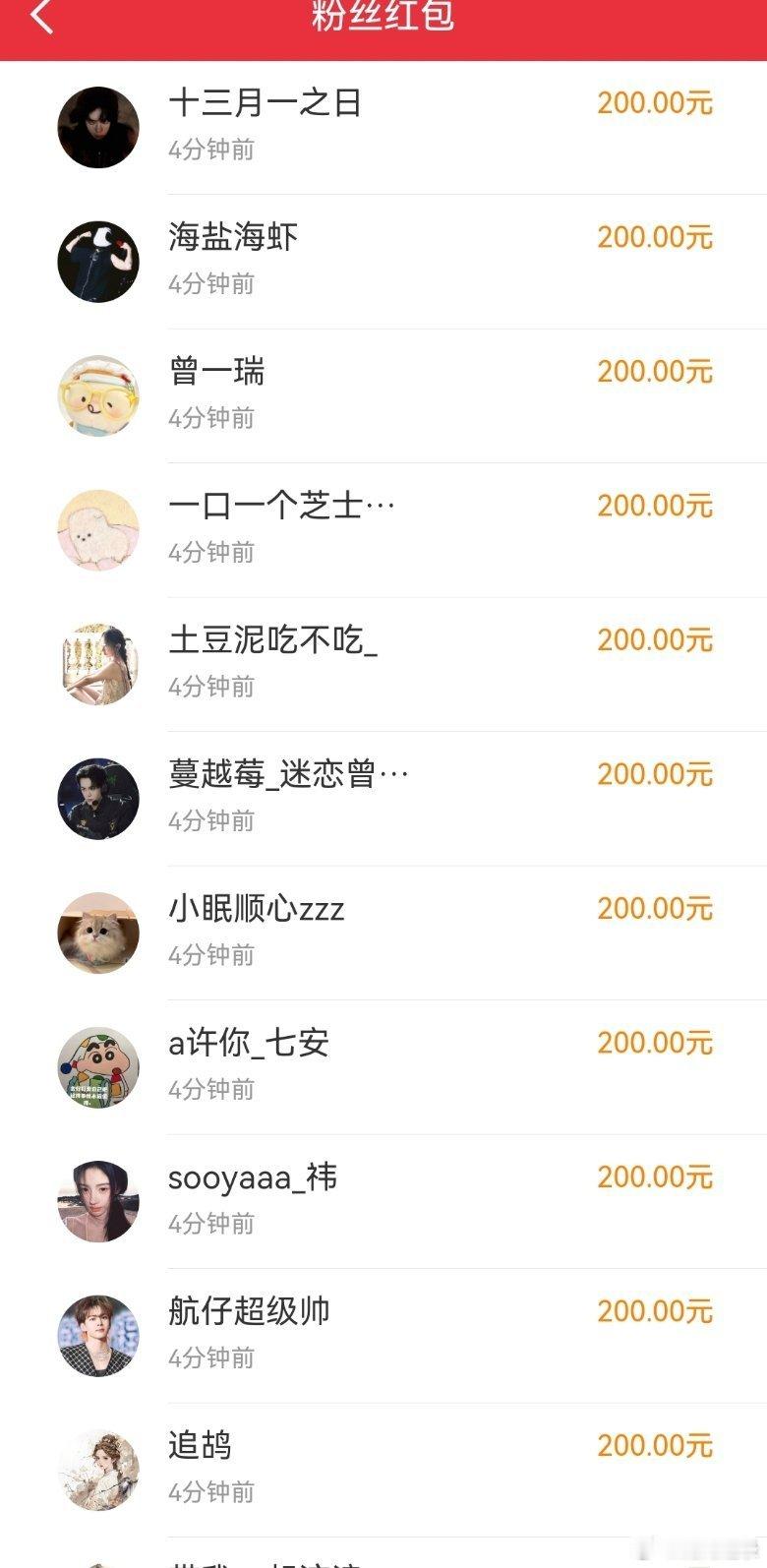 曾舜晞钻粉 人均200 咱就是说曾舜晞钻粉人均200,真的是让我都羡慕哭了呀,没有抢到他的红包,我真的今天晚上都觉得好遗憾