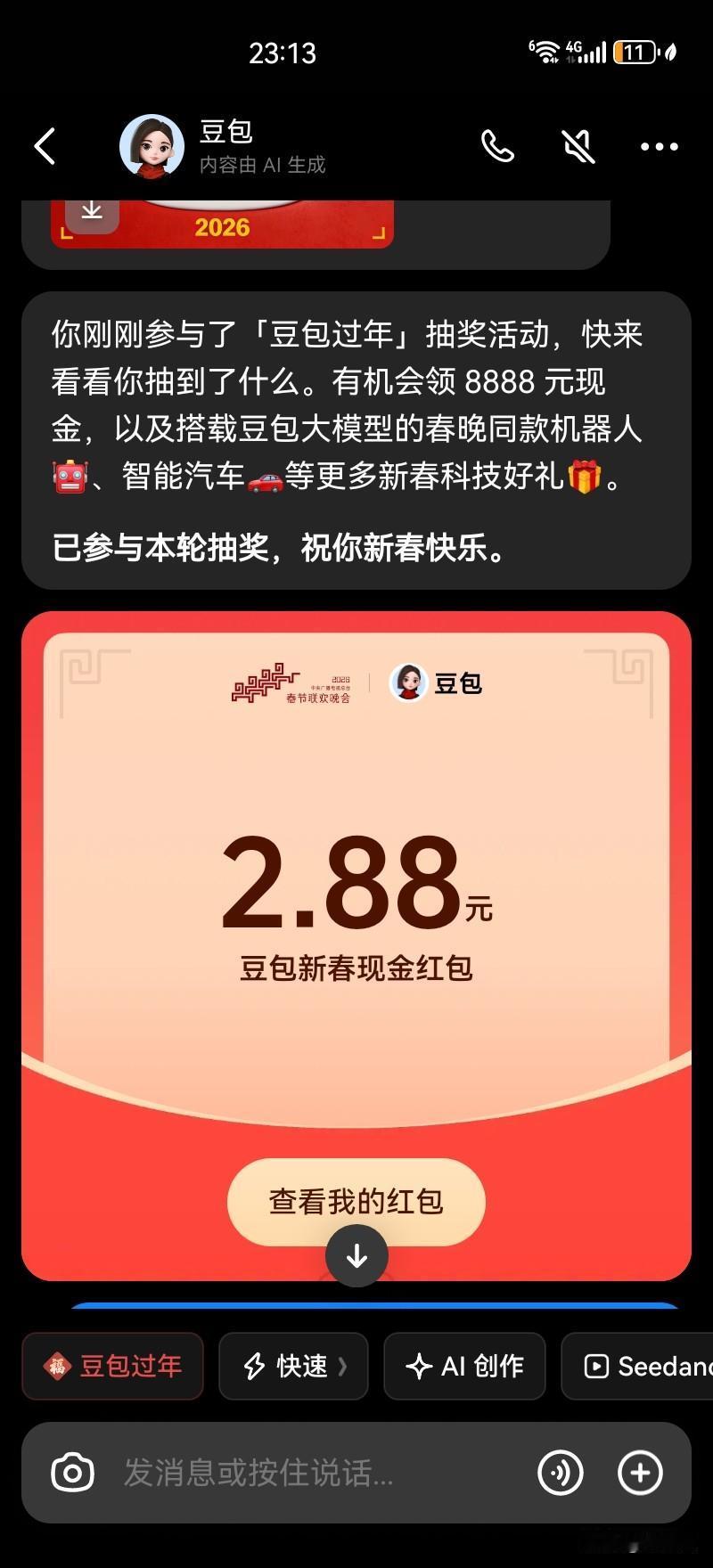 央视春晚开播一小时,发现3个“万万没想到”!🤯 第一,没想到机器人“全面入侵”! 去年扭秧歌还颤颤巍巍,今年直接开始打醉拳了!高难度动作一气呵成,尤其是那个武BOT 与塔沟武校的联袂表演,简直是全场最佳。这表现力,感觉都要抢了真人的风头! 第二,没想到机器人戏份这么重! 开播一小时就亮相了三个节目,蔡明小品里那是高的矮的全都有。还有那个谐音梗,真让我服了:“哪个生肖最气人?鸡!因为机器人(鸡气人)。”从舞台表演到生活小品,咱们的新质生产力真的是藏不住了,骄傲!🇨🇳 第三,没想到今年的广告这么“硬”! 蔡明的小品堪称广告合集,豆包、海澜之家、B站轮番登场。 不过话说回来,今年领到的第一个红包就是豆包给的,2.88元开门红!你们今晚领到多少了?评论区晒一晒!🧧 但要我说如果非要选一个最精彩的节目,那必须是机器人打醉拳! 这绝对不是因为我想夸AI(狗头保命)。说实话,那个画面太震撼了——一边是传承千年的少林功夫,讲究“形醉意不醉,步乱心不乱”;另一边是冷冰冰的钢铁之躯。 但当机器人把每一个踉跄、每一个出拳都精准到毫秒,甚至比真人还要稳、还要有节奏感时,那种“科技与狠活”碰撞出的美感,真的让人起了一身鸡皮疙瘩。 这不仅是技术的胜利,更是中国这几年硬实力的直接展示,确实“夯爆了”! 春晚武BOT杀疯了