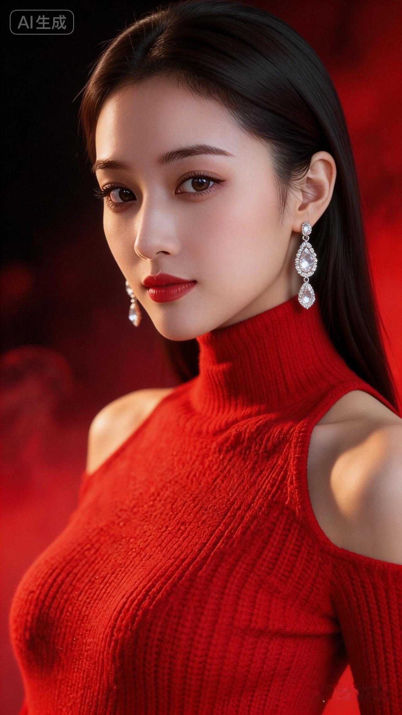 惊艳的红衣少女,闪耀的耳环,尽显优雅与魅力!💃✨