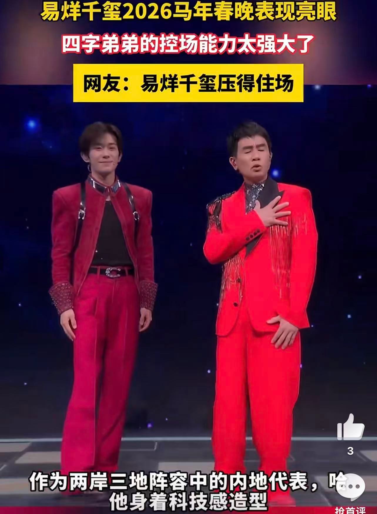 易烊千玺压得住场谁被千玺的舞台张力折服了?在《智造未来》中风格独树一帜,默契配合两岸三地阵容,青春能量完美驾驭硬核科技风。