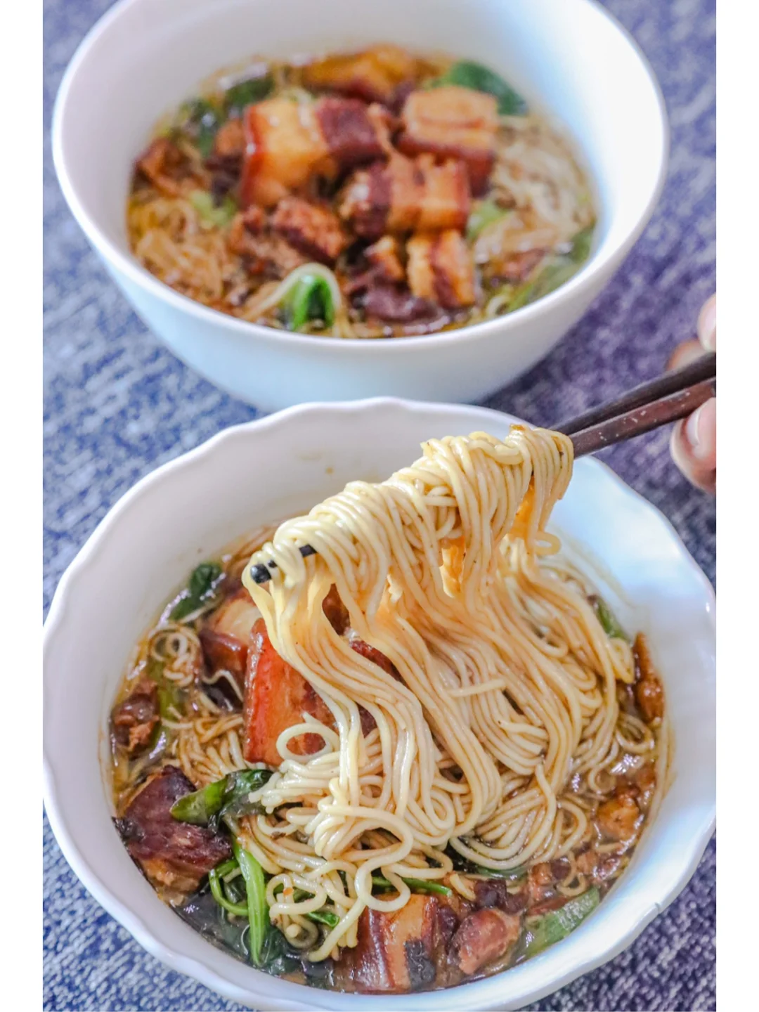 剩下的卤汤也不能浪费了,煮了一点米线,做成了红烧肉米线,肉肥而不腻,米线弹牙入味,味道好极啦~