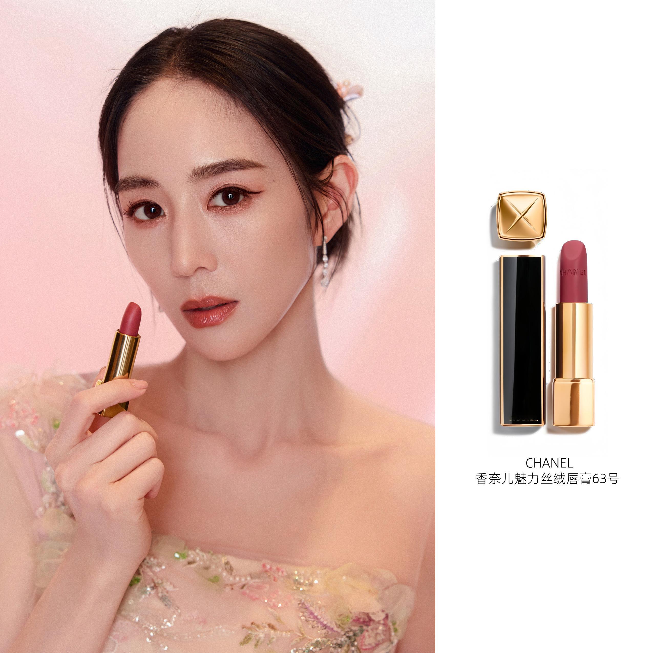 她的妆造以干净底妆与利落发型为基调,重点落在唇间那抹克制却深邃的玫瑰调——来自香奈儿魅力丝绒唇膏 63 ,搭配香奈儿172 唇线笔。自带优雅光芒。