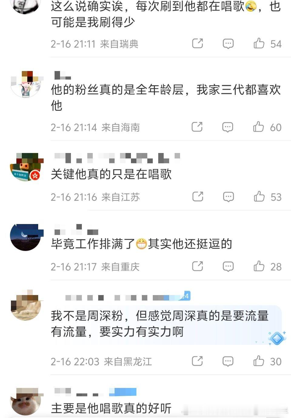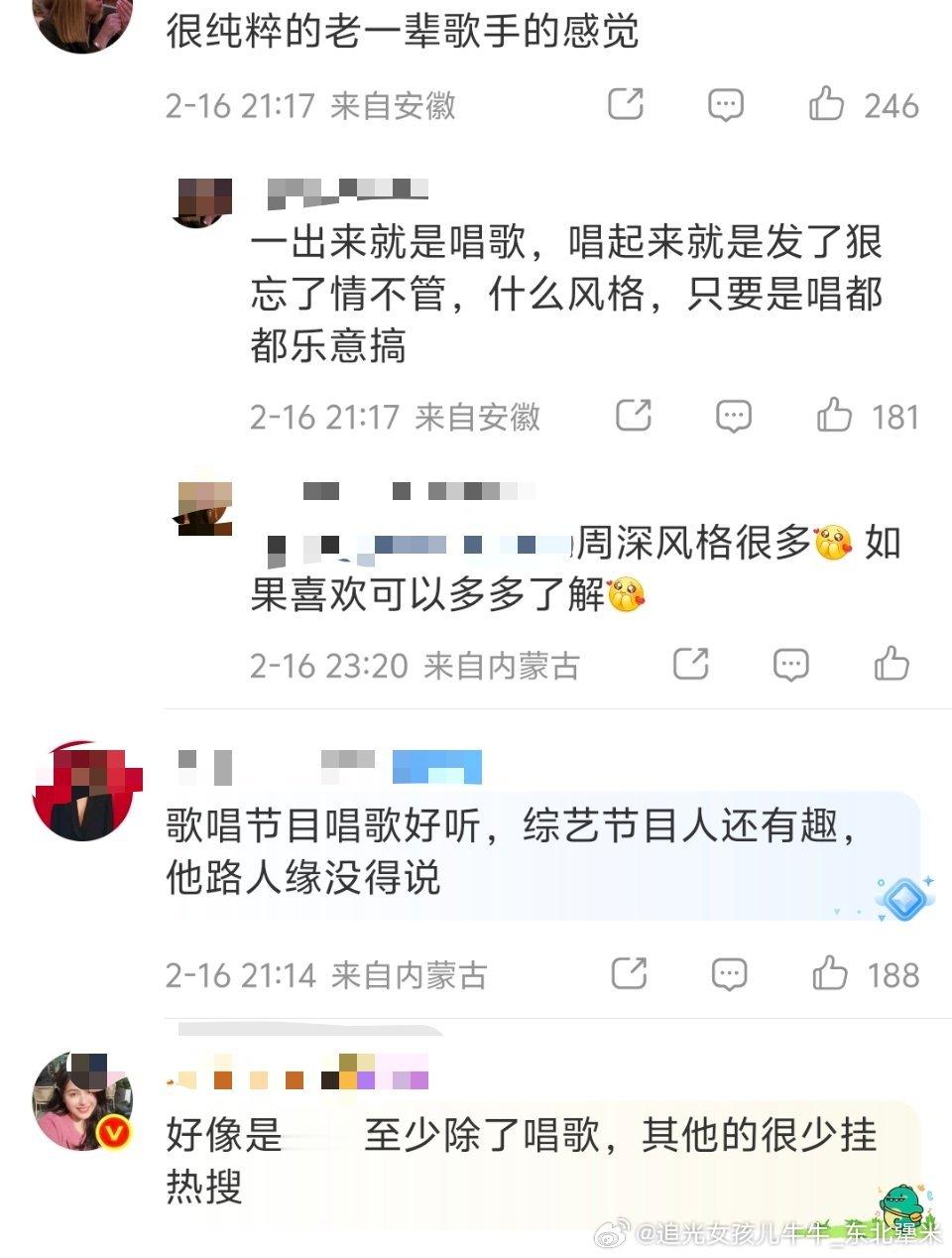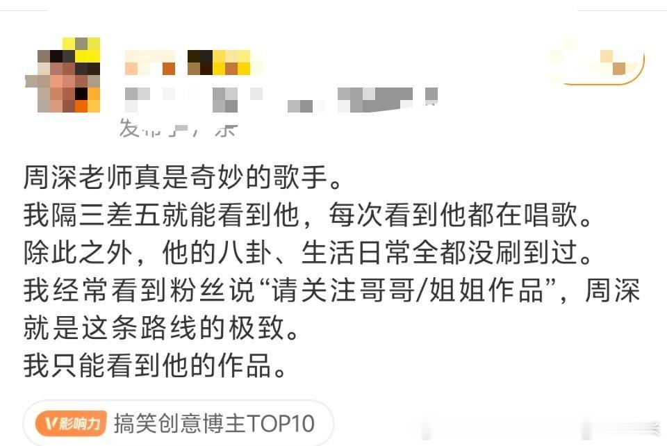 周深还得是周深周深唱功免检周深一出来我就知道稳了 春晚唱完了路人对周老师的一些评价,感慨!只要在网上能找到有关他的视频,不是在唱歌就是在唱歌的路上。甚至于沙雕都在用嗓子无八卦,日常私生活有综艺感,情商高,头脑清醒,路人缘好等等!领导你真的被越来越多的人看到了