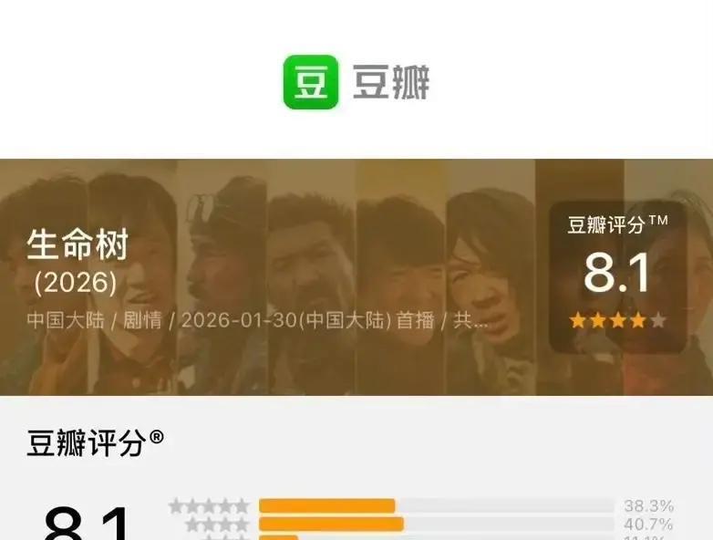 流量明星捆绑烂剧,上亿营销砸出个寂寞,结果《生命树》这“破剧”却像幽灵一样,悄悄豆瓣8.1分,十万人疯狂点赞。 你以为热搜都是真顶流? 错了。 那边资本狂撒钱,明星站台吆喝,剧集却像泡面,三分钟索然无味。 这边《生命树》没宣发,没排面,全凭角色一句台词、一个眼神,把人心挖空又填满,口碑像野火烧过草原。 靠流量炒作是过去式,拼内涵扎实才是真本事。 别再被假象蒙蔽双眼,因为好故事无需喧嚣,好作品永不沉默。