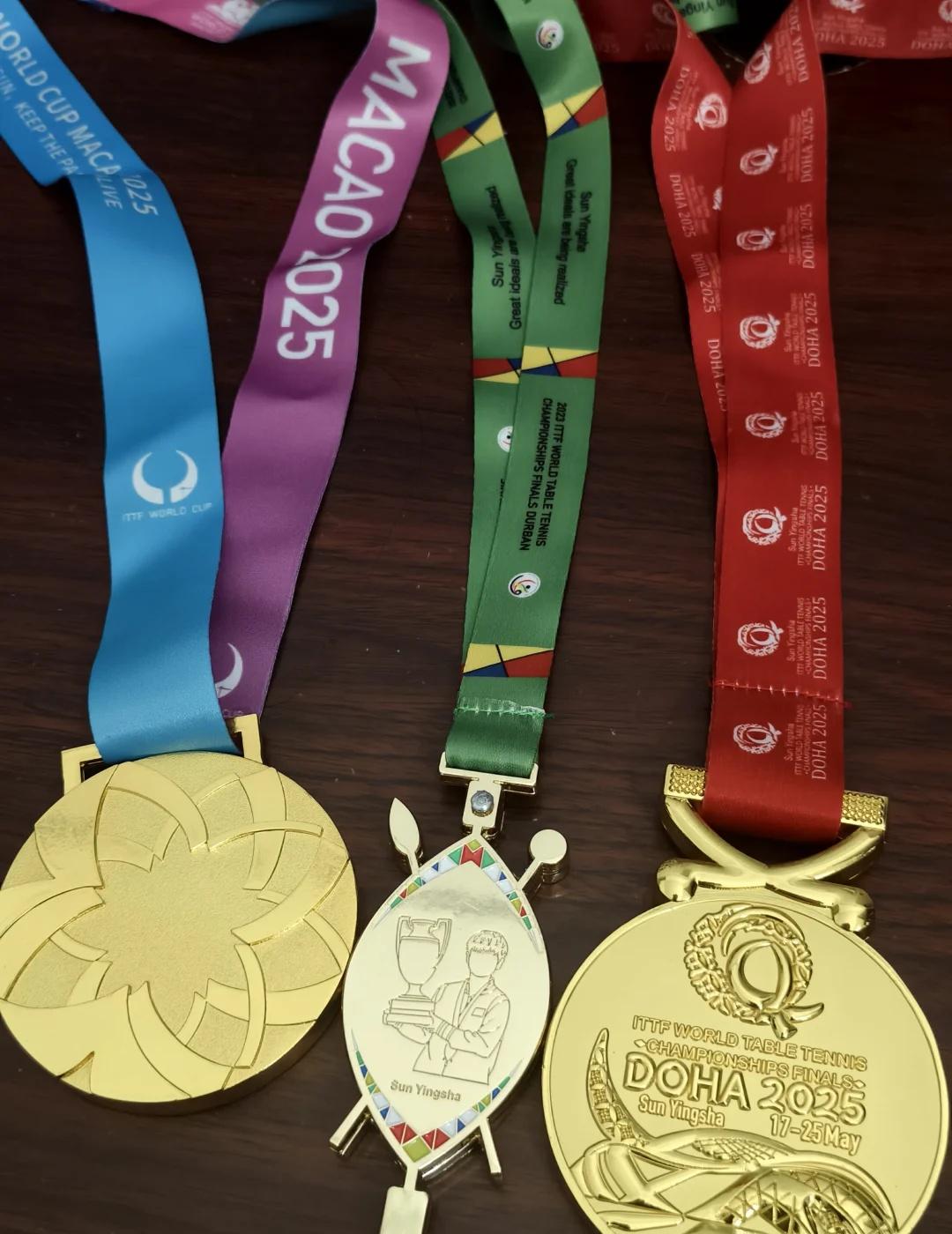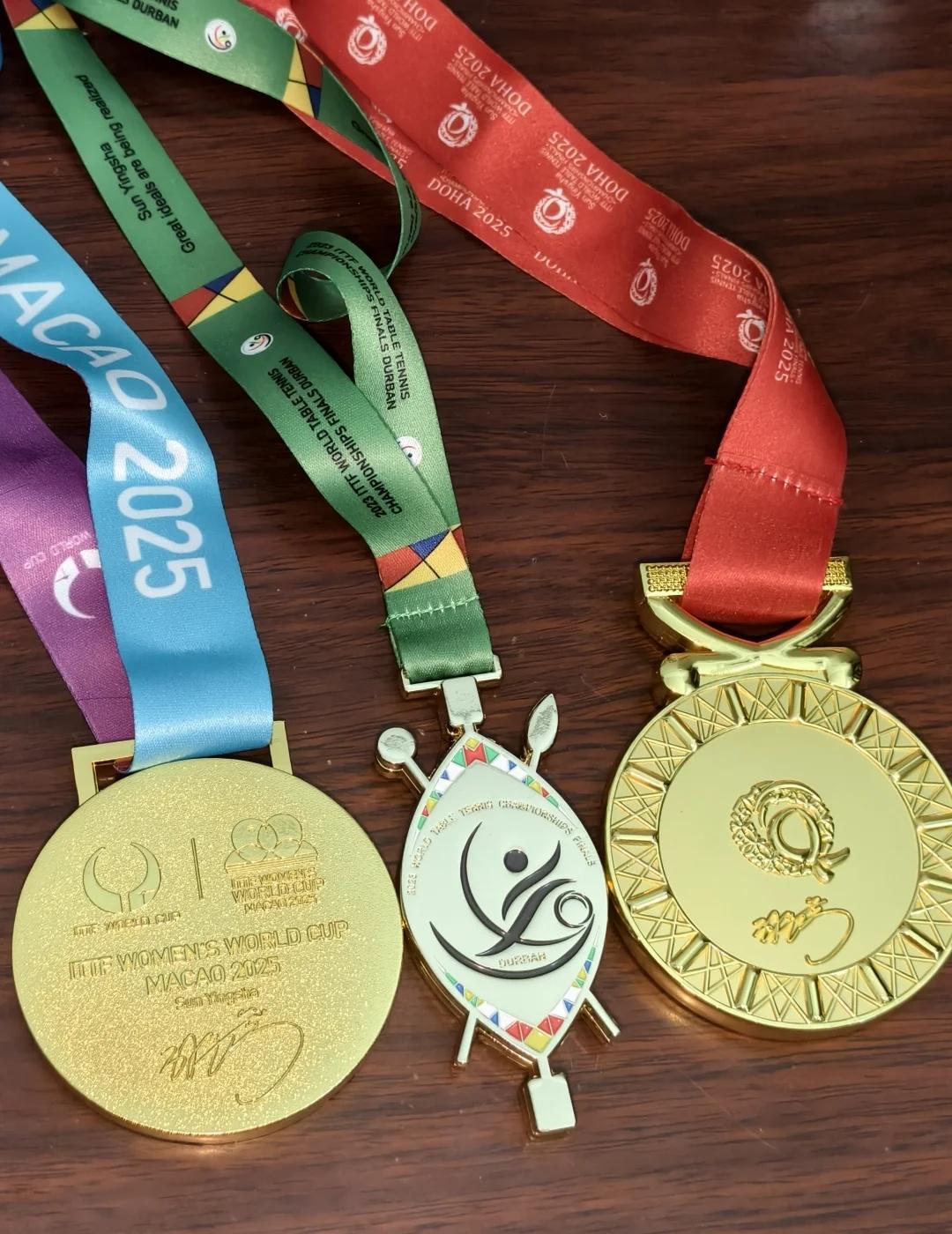 也是拿到小莎的奖牌🏅 一幕幕都好有纪念意义😭💧 都是小莎重要的夺冠时刻 德班 世界杯 多哈🏆孙颖莎