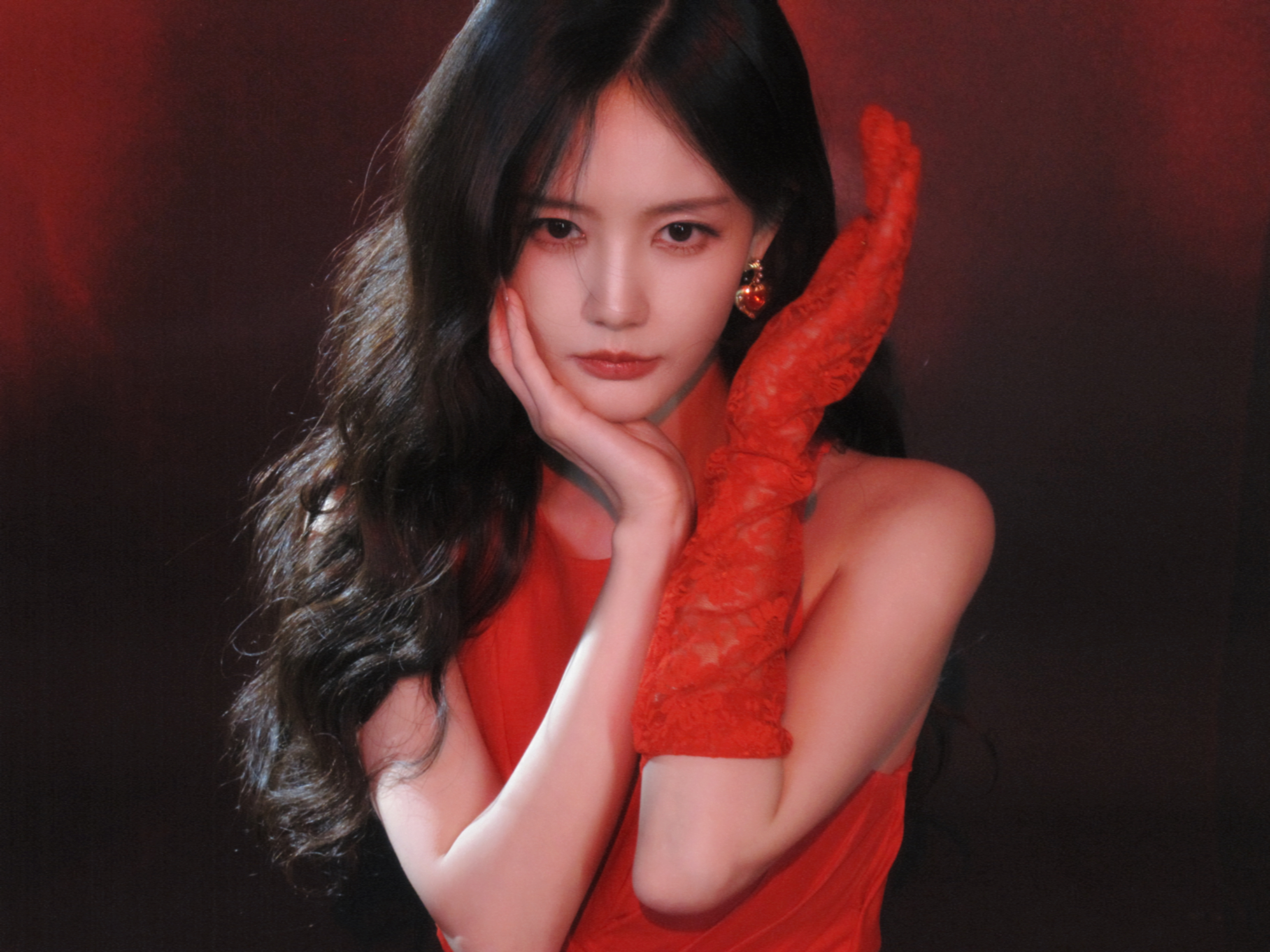 迪丽热巴×新春大片🌹一袭HouseofCB蕾丝拼接红裙出镜,鎏光闪