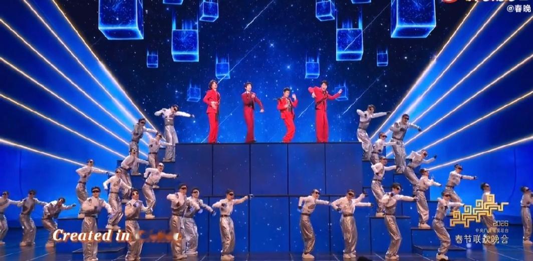 智造未来唱出未来生活的模样这舞台太有排面!四位嘉宾风格各异却默契十足,机器人在观众席鼓掌超吸睛。歌声与机 械 舞步交织,把未来生活图景和科技实力演绎得淋漓尽致。春晚科技含量满满的歌曲