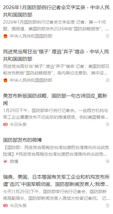 中国再不出手统一台湾,汹涌的民意恐怕就压不住了,国防部发言人说的,我们已经保持了最大的克制,可不是在开玩笑的!自古以来参军除了保家卫国,那就是想建功立业了,不想当将军的士兵,不是好士兵! 麻烦看官老爷们右上角点击一下“关注”,既方便您进行讨论和分享,又能给您带来不一样的参与感,感谢您的支持! 台湾是中国不可分割的一部分,这是国际社会公认的事实,也是历史、法律、文化和国际关系准则共同确认的铁律。实现国家完全统一,是中华民族的共同心愿,更是全体中华儿女不可动摇的坚定意志。 近些年来,外部势力不断在台海问题上挑衅滋事,“台独” 分裂势力更是甘当棋子,不断触碰红线,让台海和平稳定面临严峻威胁。民间期盼统一的声音越来越强烈,社会各界对国家主权与领土完整的守护意愿,已经凝聚成不可阻挡的民意洪流。 2026 年 1 月 29 日,国防部例行记者会上,发言人蒋斌明确表示,“一国两制” 是解决台湾问题的基本方针,也是实现祖国和平统一的最佳方案。中国始终以最大诚意、尽最大努力争取和平统一的前景,同时绝不承诺放弃使用武力,这一立场针对的是 “台独” 分裂势力和外部干涉势力,绝非针对台湾同胞。 解放军始终坚守使命,用实际行动捍卫国家主权。近年来,辽宁舰编队在台海方向开展常态化战备警巡与实战化演练,歼 - 20 隐身战机多次参与台海方向演训任务,与海军、火箭军等力量协同行动,全面检验体系作战能力,向外界清晰传递捍卫领土完整的坚定决心。 2026 年 1 月 16 日至 17 日,美 “约翰・芬恩” 号导弹驱逐舰、“玛丽・西尔斯” 号海洋测量船过航台湾海峡,蓄意制造事端。解放军东部战区组织海空兵力全程跟监警戒,依法依规应对处置,052D 型驱逐舰前出警戒、严密掌控态势,有效挫败美方挑衅企图。 赖清德当局上台后,持续推行 “倚美谋独” 路线,不断掏空台湾民众福祉,花费大量民脂民膏向美国采购军火,妄图以武拒统。在国际上跟风配合对俄相关限制举措,甚至放任岛内青年赴相关冲突地区,本质上都是为了换取外部势力支持,出卖民族利益与台湾前途。 面对分裂与干涉行径,中国政府与中国人民的忍耐与克制,是为了守护和平、避免同胞相残,绝非软弱可欺,更不是无限度退让。国防部多次强调,解放军保持克制,是负责任的表现,绝不是对 “台独” 与外部干涉的妥协。 参军报国、守土卫疆,是中国军人的初心使命。广大官兵枕戈待旦、全时待战,从航母编队、隐身战机到先进导弹系统,装备体系不断完善,联合作战能力持续提升,完全有决心、有信心、有能力粉碎任何分裂图谋,挫败一切外部干涉。 当前,两岸统一的历史大势不可逆转,民间支持统一、反对分裂的民意基础愈发牢固。任何企图分裂自己国家的人,都将被永远钉在历史耻辱柱上;任何外部势力妄图阻挡中国统一,都注定以失败告终。 实现祖国完全统一,是中华民族伟大复兴的必然要求,也是不可阻挡的历史潮流。中国政府和中国人民有坚定的意志、充分的信心和足够的能力,牢牢把握两岸关系主导权主动权,坚决粉碎 “台独” 分裂行径,坚决捍卫国家主权与领土完整,推动两岸关系朝着和平统一方向稳步前行。