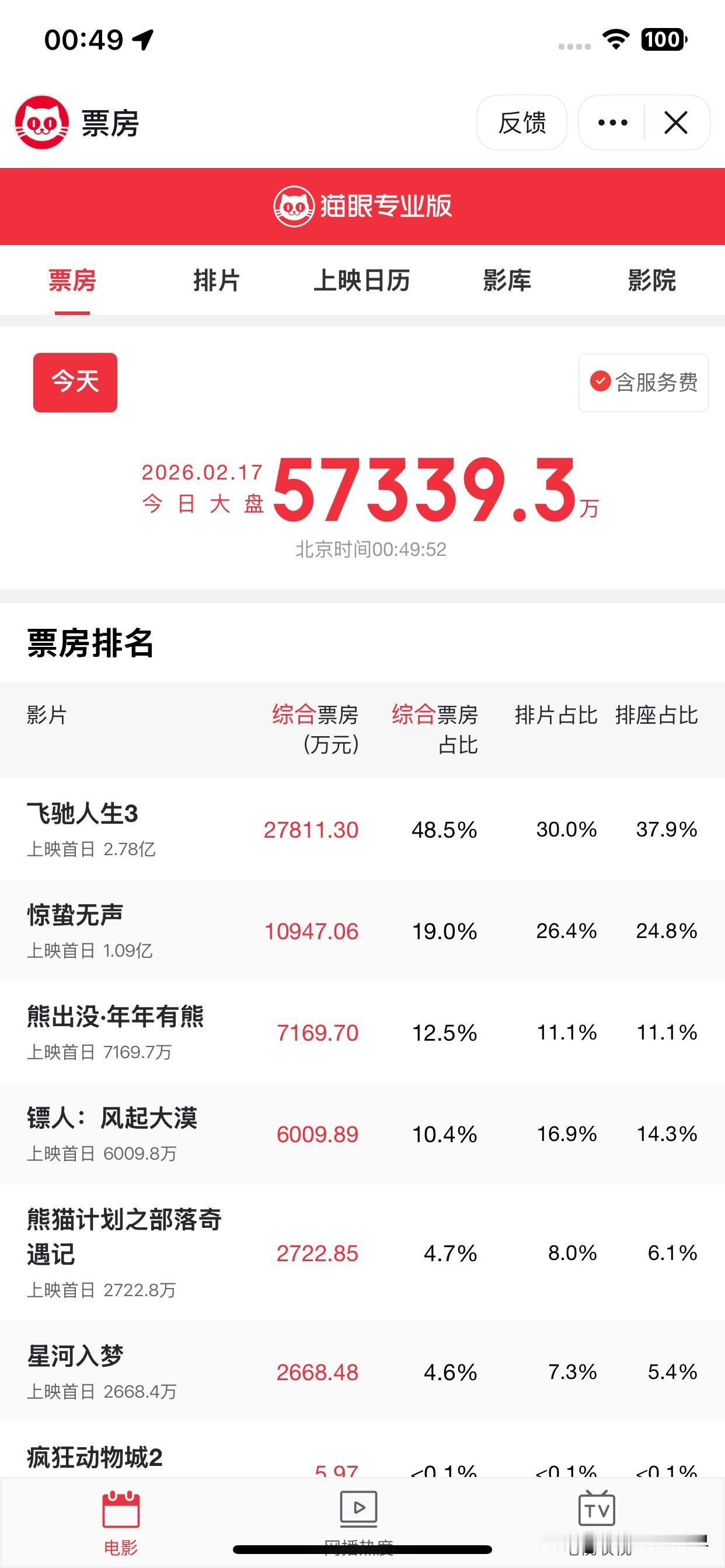 就这电影“镖人”票房还想达到20亿,预售票房还没动画片“熊出没”高,真当钱是大风刮来了,目前“镖人”排片中规中矩,不算高也不算低,将近17%的排片足够它在春节档喝一回,就看它口碑和电影质量如何,是否有足够走长线的潜质,现在的消费者也就春节前三天无脑疯狂一回,后面全靠电影质量本身说话,想糊弄消费者可不好糊弄,接下来就看它的表演。