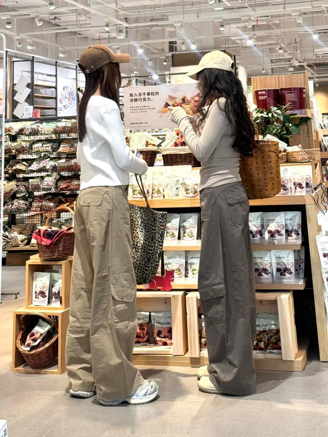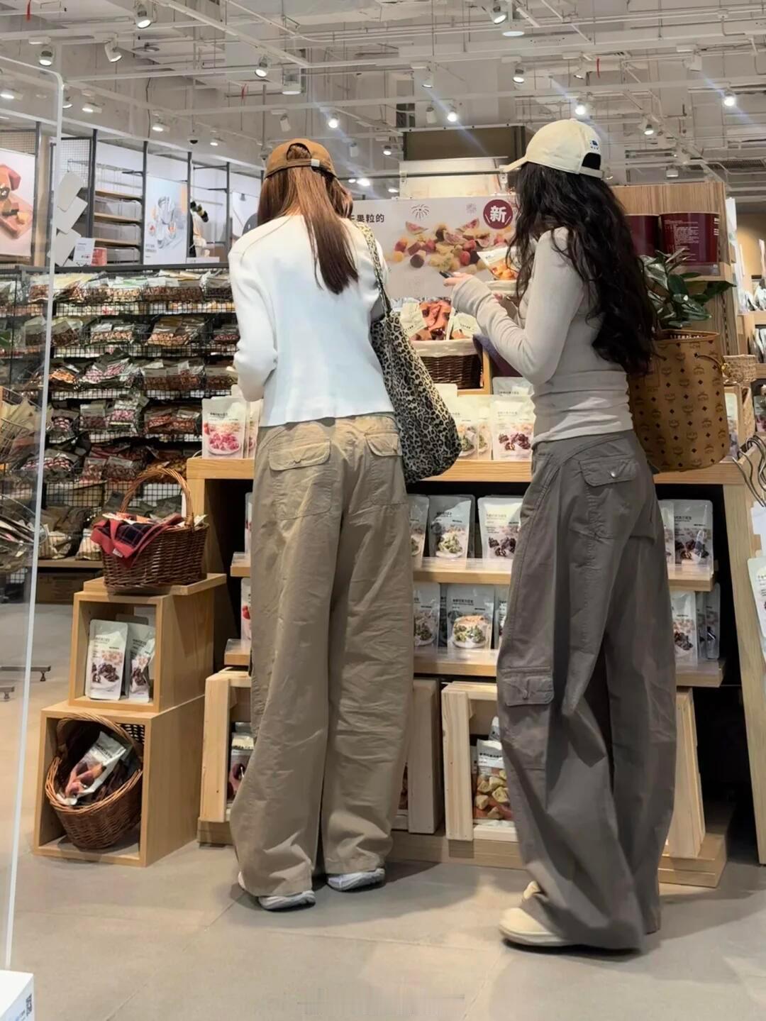 无印良品看到的,,忍不住 vocal! vocal !一眼就看中两个小姐姐的裤子,弯刀版型的工装裤好显瘦,特别显腿长,后面两个口袋的设计真的太板正了!!!不会显得屁股大,裤腿也很有型,果断上去要🔗,入春的第一条工装裤我先拿下了!