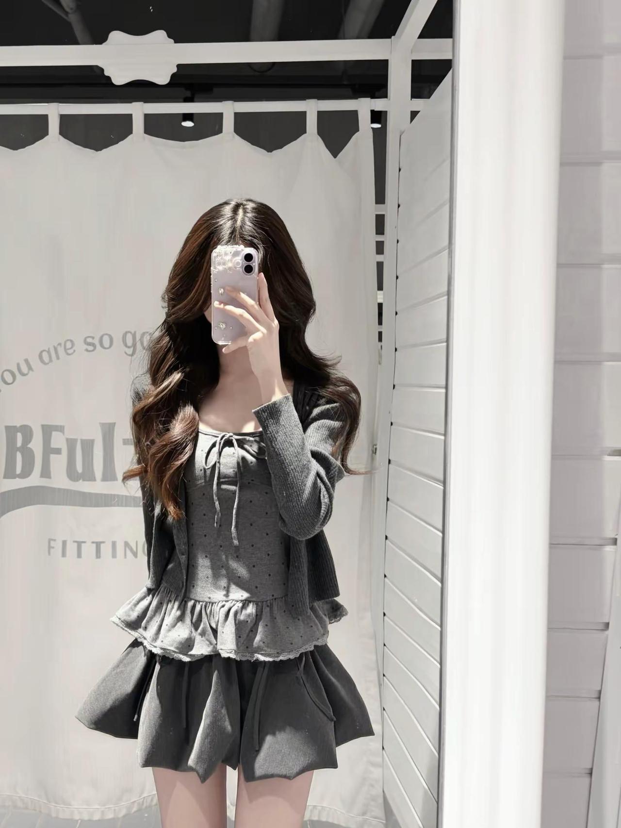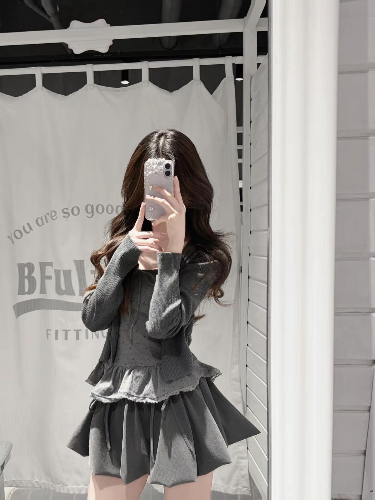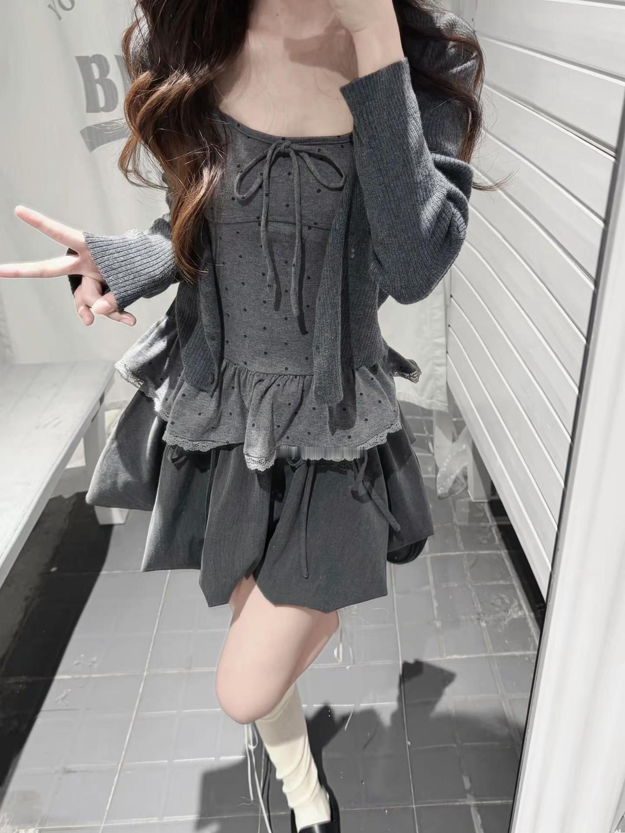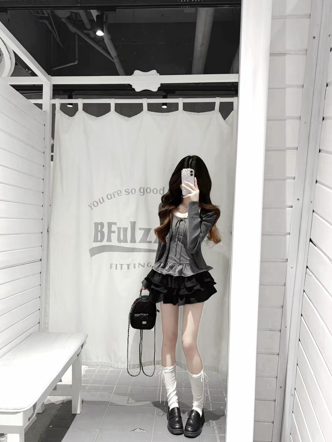 女生审美1还是2 ?!搭灰色花苞裙还是黑色蛋糕裙??韩系穿搭