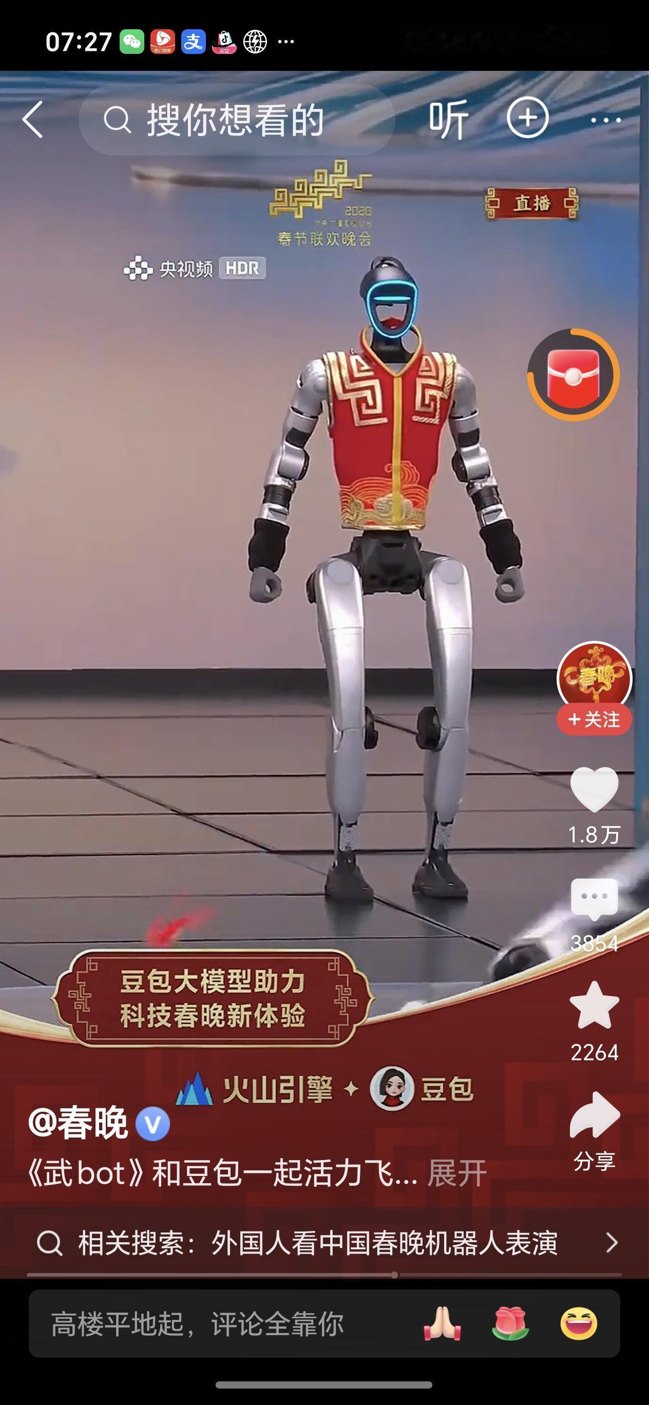 机器人在马年春晚的表现有何亮点今年春晚机器人的表演太震撼了!去年的机器人有点像步履蹒跚的老年人在跳秧歌,今年的机器人则活力四射,不仅与少年对打,还会有后空翻、打醉拳,而且舞剑舞棍的武术动作丝滑如行云流水,简直是一群武林高手,看得人心潮澎湃热血沸腾,这是质的飞跃啊,为祖国的强大感到自豪!感谢科研人员的付出,为他们点赞[赞]。