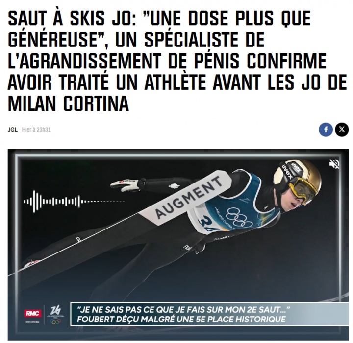 直播吧02月17日讯据法媒RMC援引美国媒体《今日美国》的报道,一位专门从事通过注射玻尿酸为男性下体进行增大手术的医生——亚历山德罗·利塔拉在接受采访时正式,自己曾在米兰冬奥会开赛几周,为一位跳台滑雪运动员进行过相应的治疗。