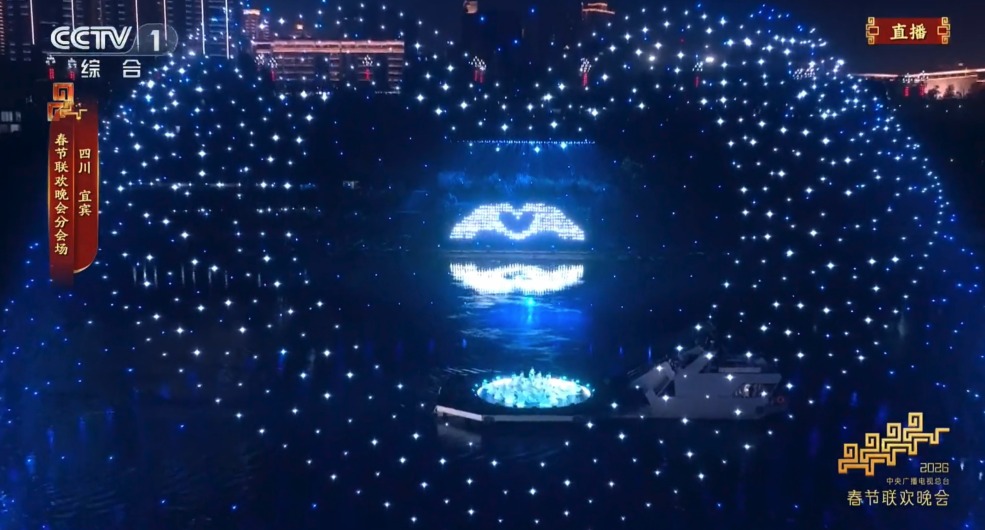 在表演中,水上机场平稳停靠于江面,与粼粼江水相映成趣,成为宜宾分会场极具辨识度的视觉亮点,也能让全球观众直观感受到低空科技的创新形态。