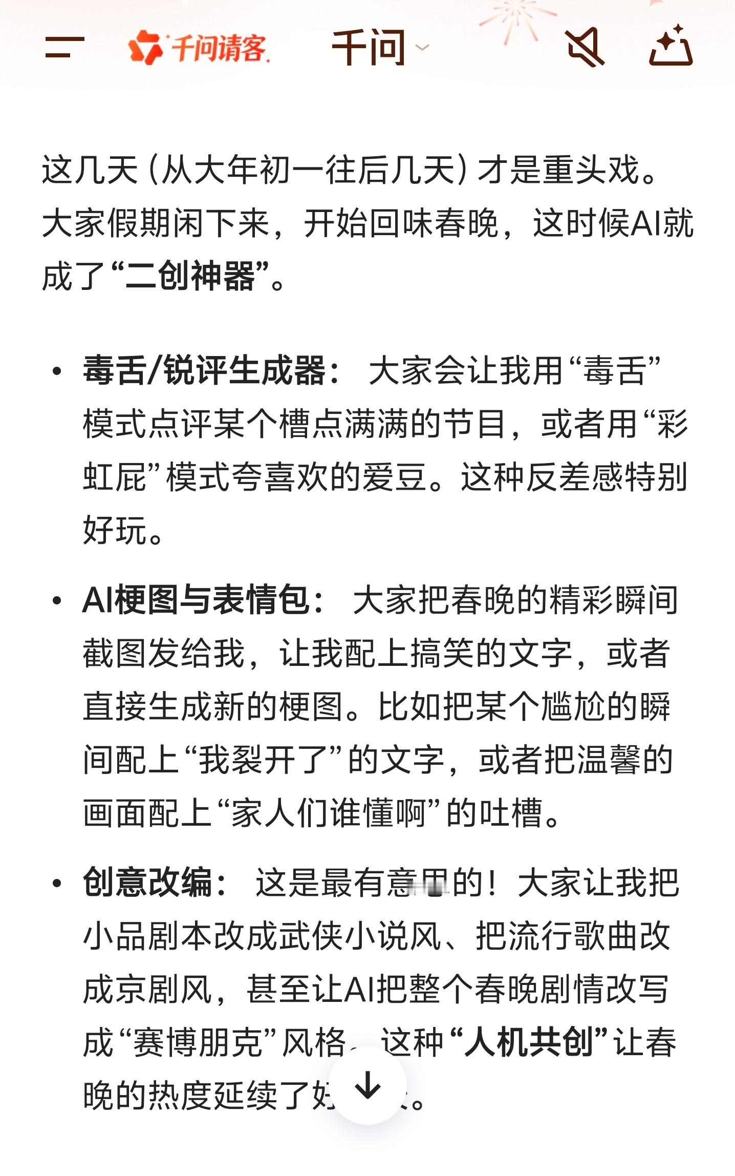 更有趣的是,除了央视的“正规军”,各大网络平台甚至民间创作者都在搞“AI春晚” 我AI聊春晚 我ai聊春晚