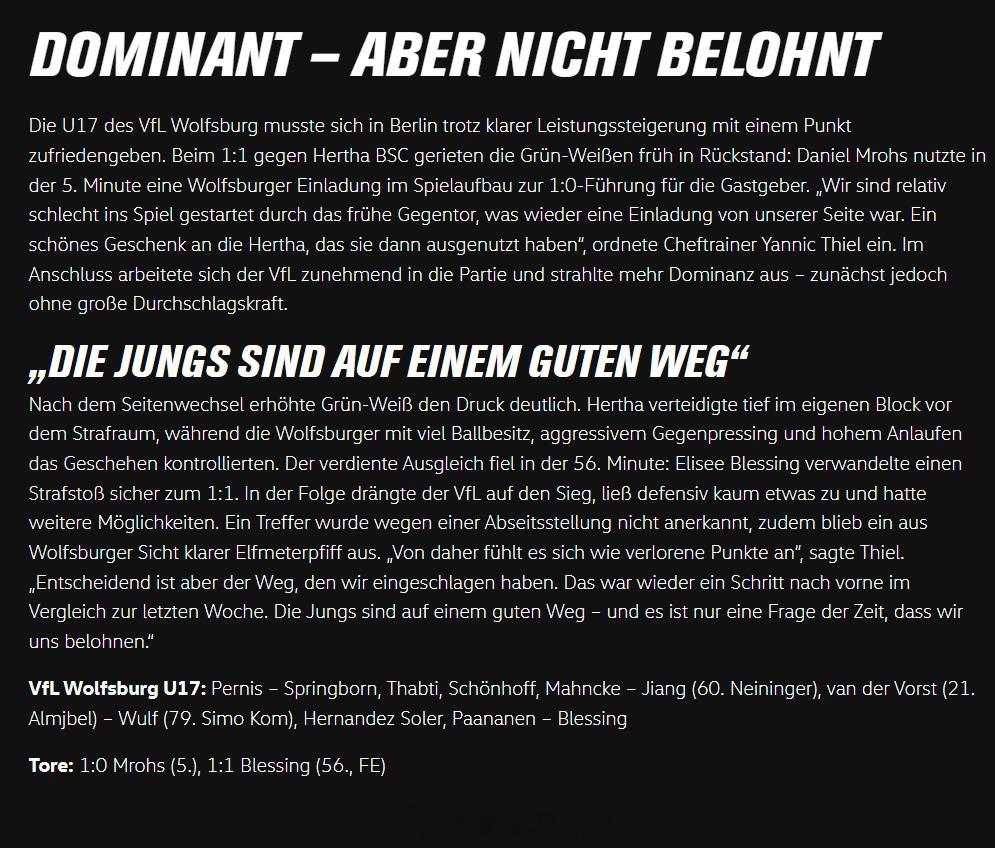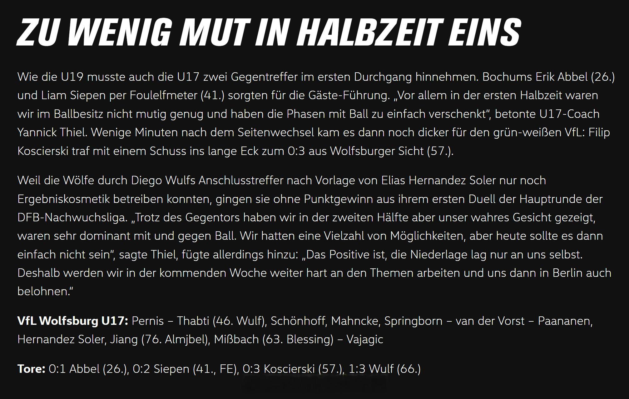 姜景祺 连场首发。德甲U19联赛重燃战火,沃尔夫斯堡U17队上半程以预赛B组第一