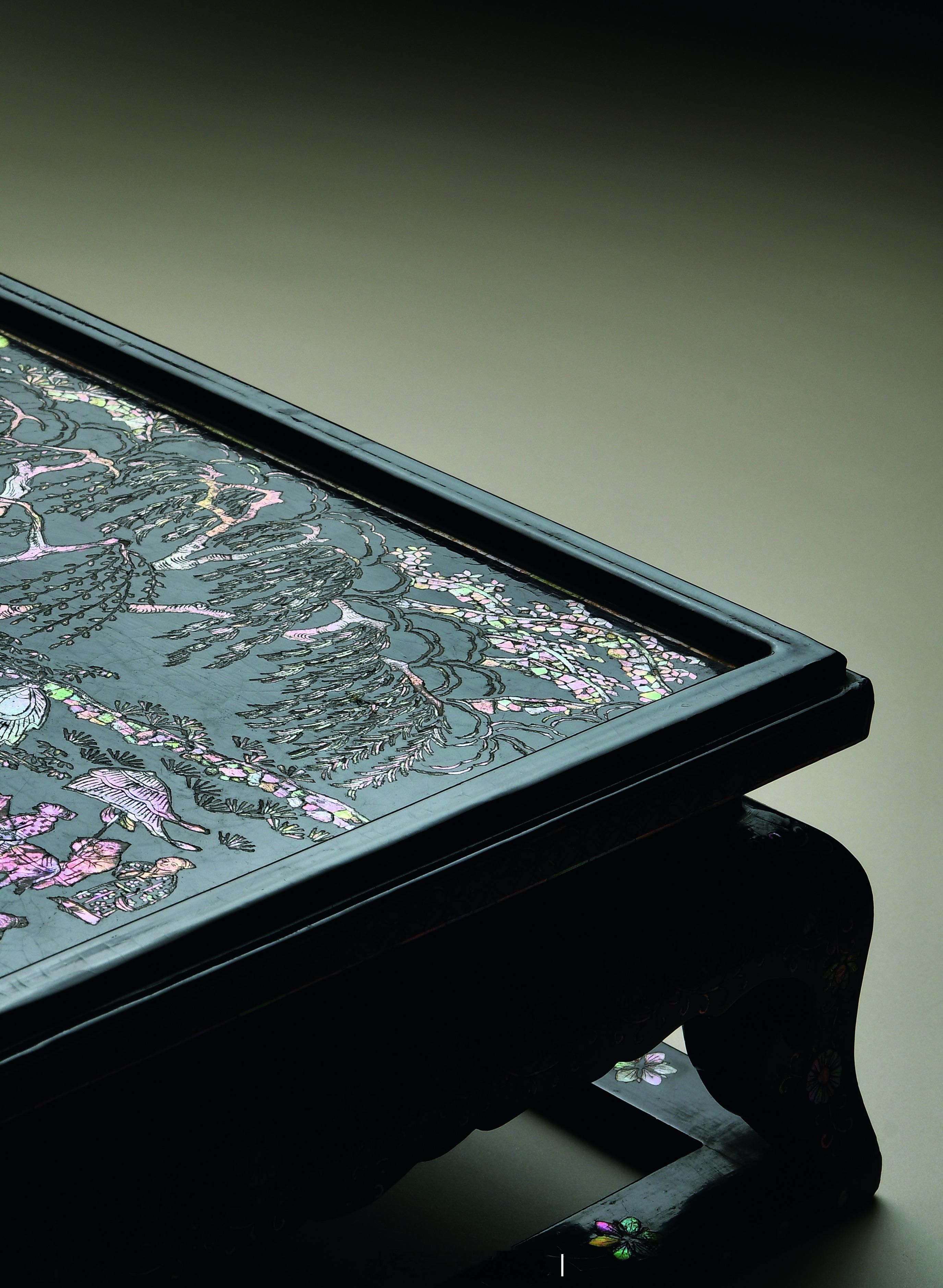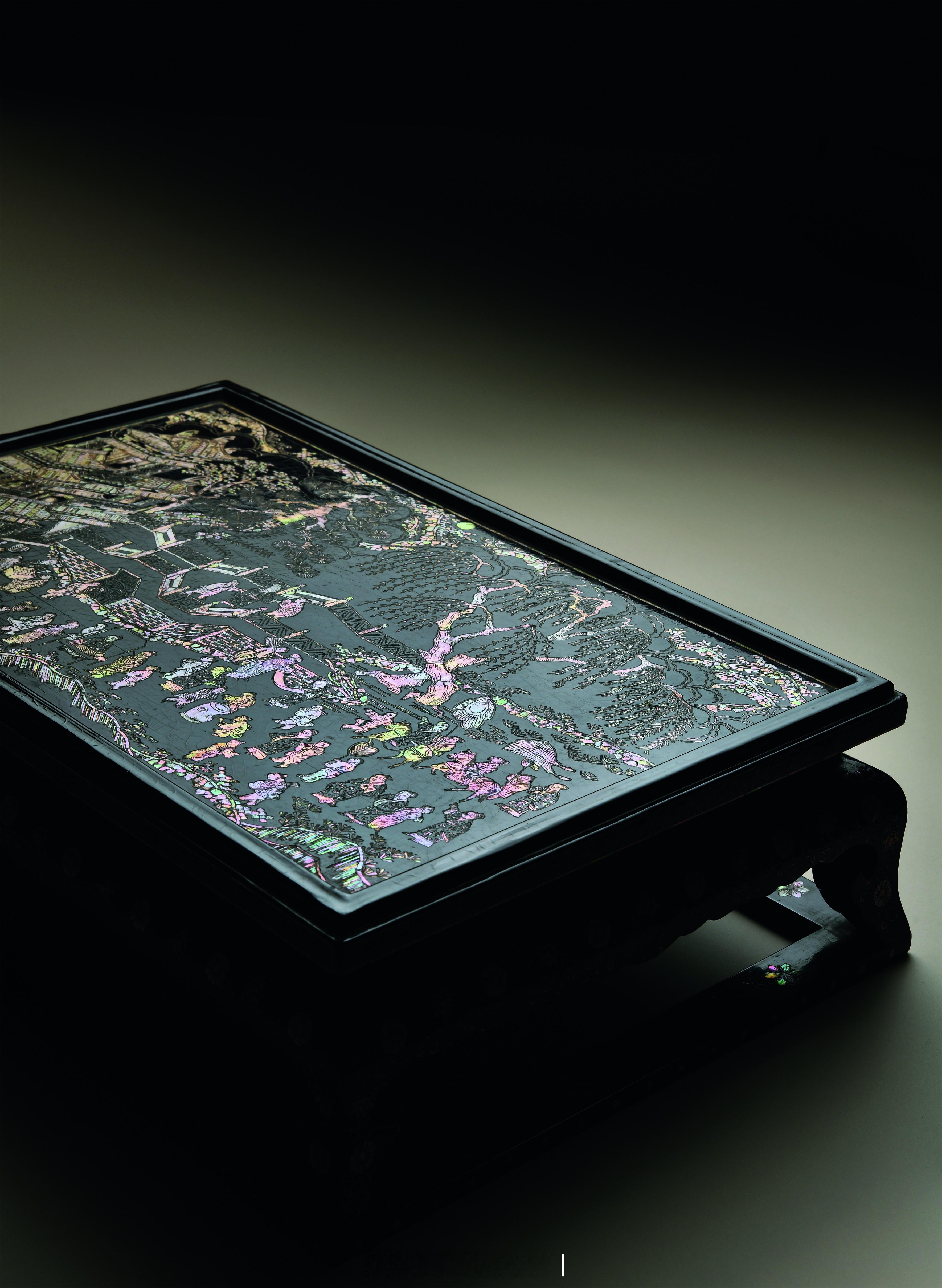 髹饰录 | 明 黑漆嵌螺钿人物故事图案几