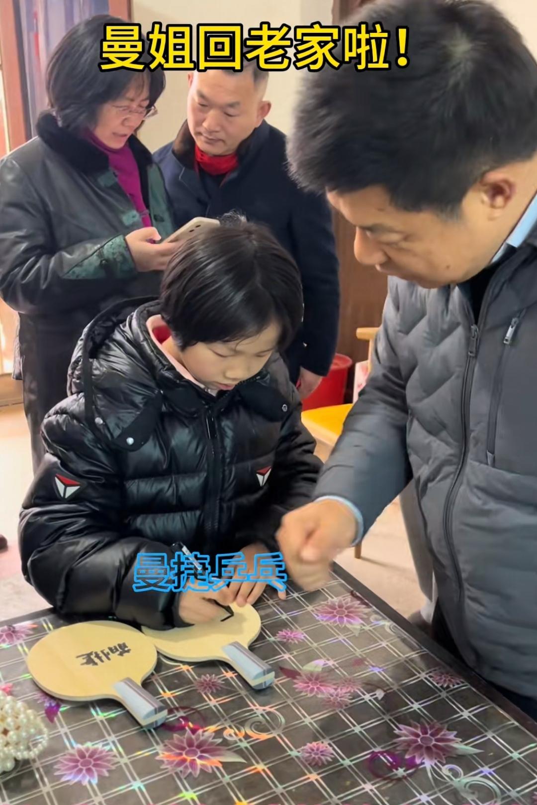 蒯曼回家过年了! 江苏有个地方叫射阳县临海镇,临海镇也叫八大家,蒯曼的老家就在八大家。 蒯曼回老家过年,临海镇的左邻右舍近水楼台先得月,蒯曼和妹妹蒯捷俨然就是名人,拿到蒯曼姐妹签名球板的邻居也是偷着乐了。 年初二蒯曼又要出发新加坡大满贯比赛了,祝福蒯曼在2026年继续保持强势晋级。