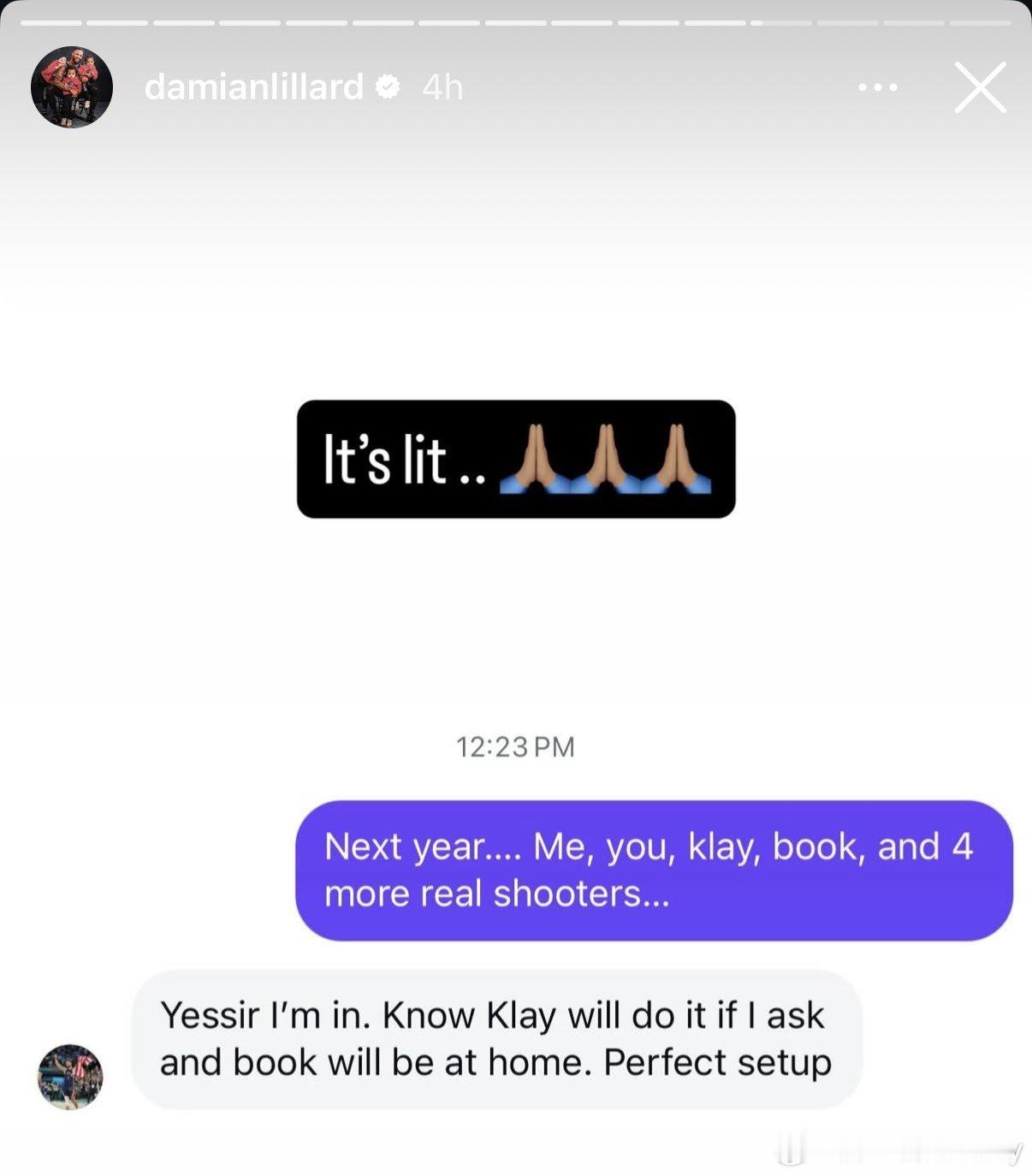 利拉德:“明年……你、克莱、布克、我,再加上4个真正的射手。”