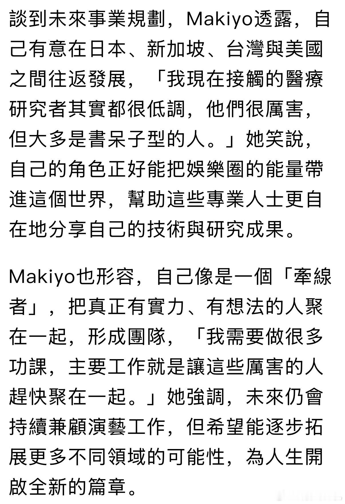 嗯?Makiyo说它把时间放在农业与医疗的相关研究上?“会做很多工作,把有实力有