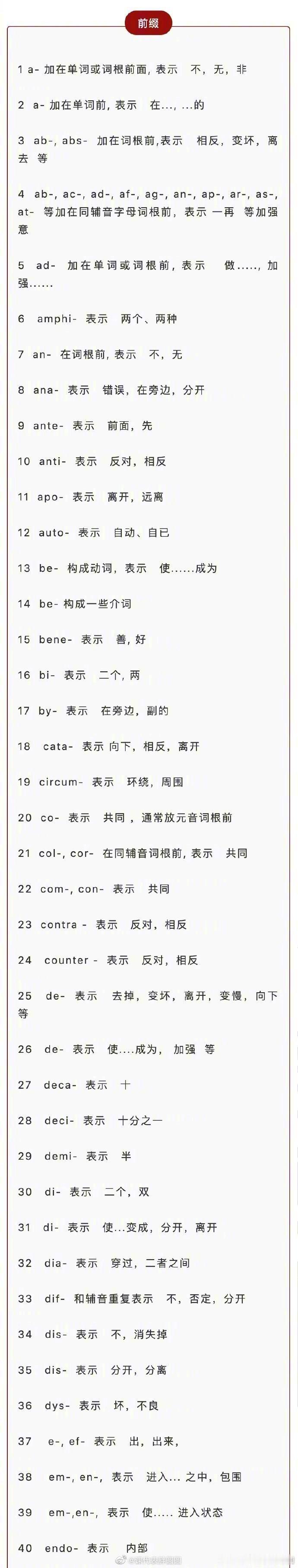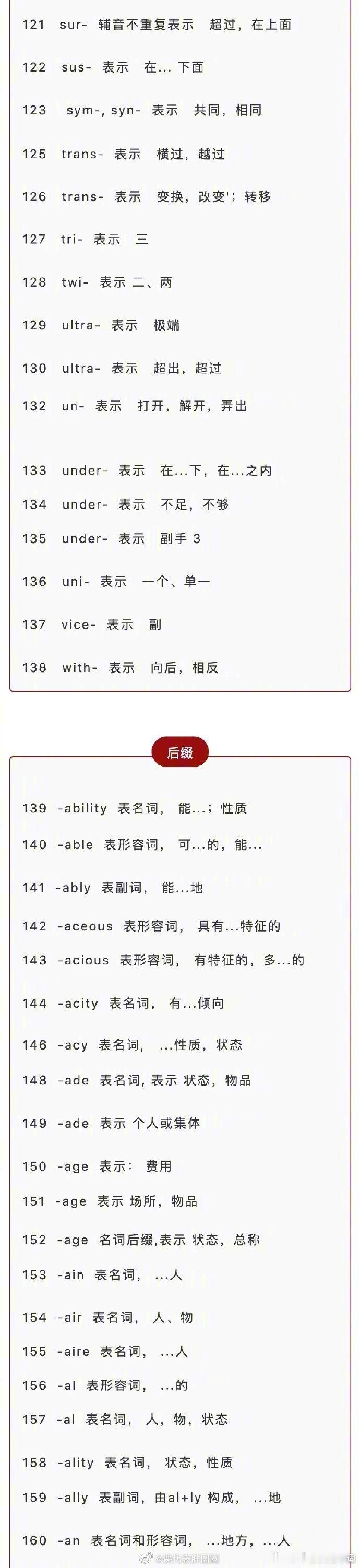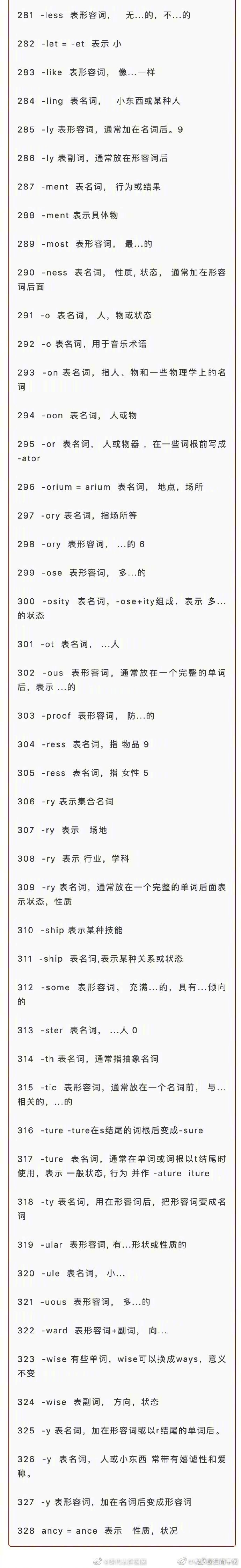 328个英语单词最常用的前缀后缀,超实用 ! 要英语考级的同学马住啦