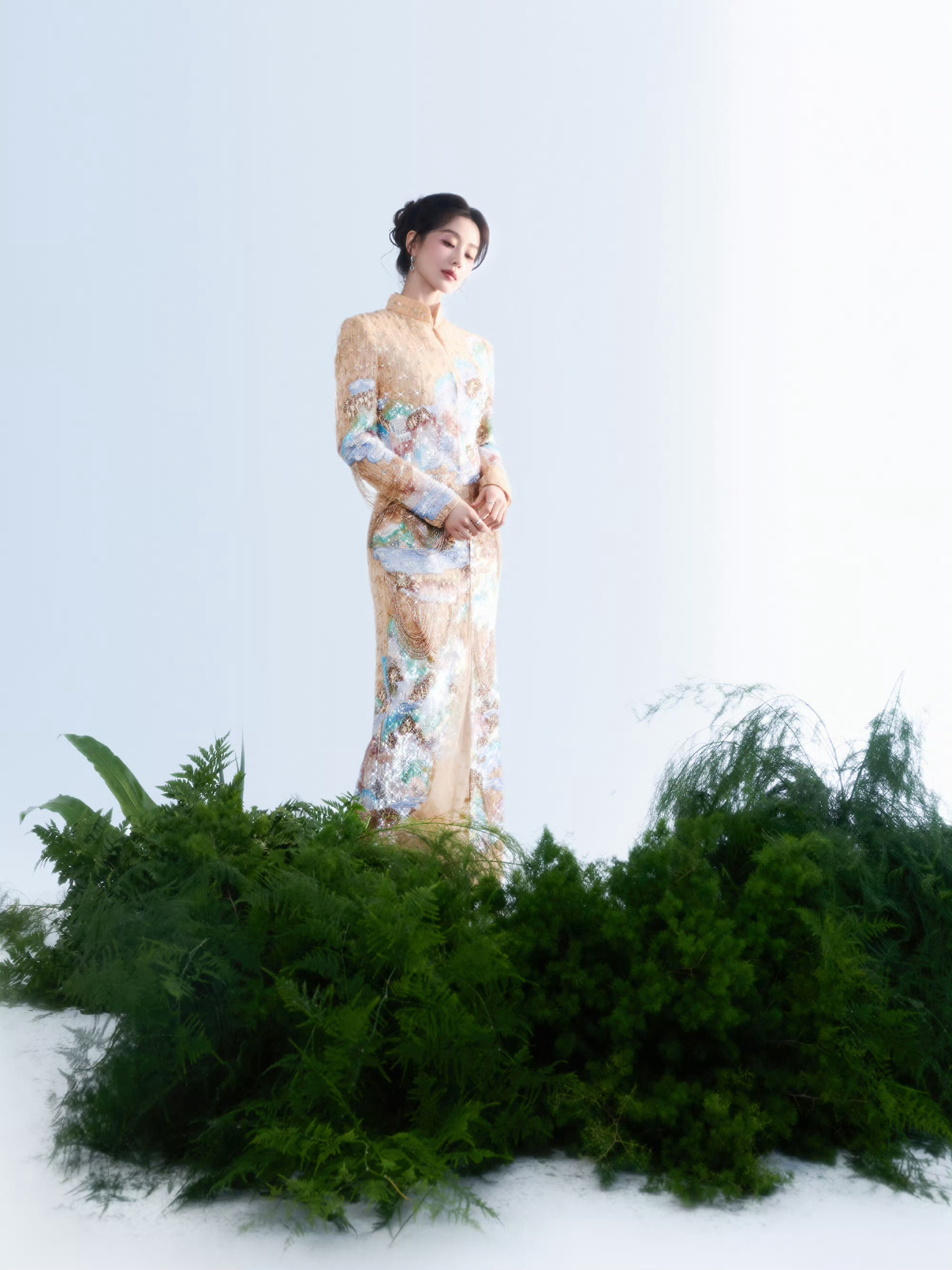 刘诗诗新春营业造型大片,演绎M essential 2024秋冬系列,而且旗袍图