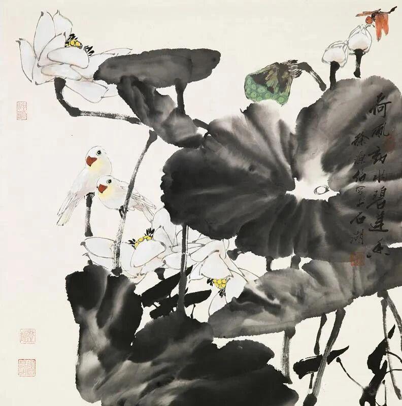 他的画里,风是轻的,云是淡的,连花鸟都带着一股子从容。墨色在宣纸上晕染开来,像被风拂过的湖面,漾开层层涟漪,却始终保持着一份恰到好处的静谧。 看那枝头的鸟,不吵不闹,仿佛正侧耳听风;叶间的花,不争不抢,自在地舒展着瓣儿。所谓“风清云静”,大抵就是把心头的浮躁都滤掉了,只剩下对自然最本真的描摹吧。