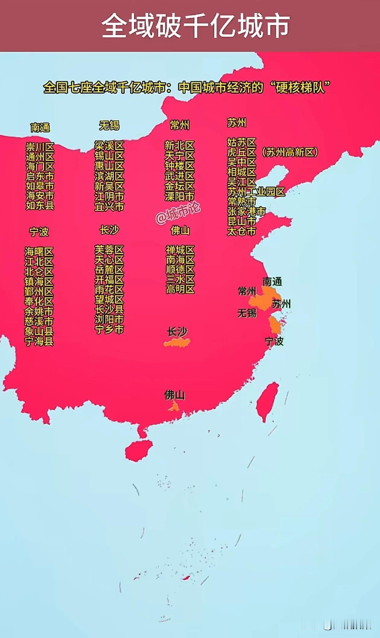 论均衡发展,只服江苏省!全国仅有7个城市所有区县都突破千亿,其中江苏就有四个城市上榜,超过了一半,分别是苏锡常加南通。 即使是一线城市的广州深圳,也有GDP没破千亿的区。由此可见,GDP总量不一定非常拔尖。但每个区县都能均衡发展,就很难得了。江苏城市gdp 江苏城市gdp 江苏各市GDP 江苏gdp排名