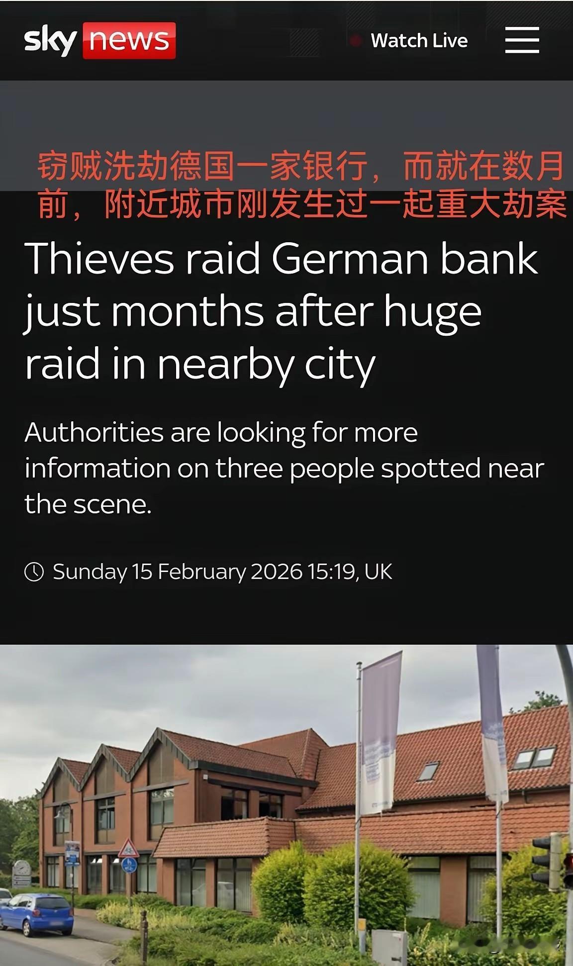 德国的贼,胆大妄为,还敢到银行的下面挖窟窿盗洞,真是无法无天了,而且使用的设备极其专业,而且还得手了,看来他们的防护措施也不行,居然挡不住贼的偷袭,如果天眼系统发达的话,这些贼根本就跑不了,可是据说在德国这里,已经发生两次这样的事情了!