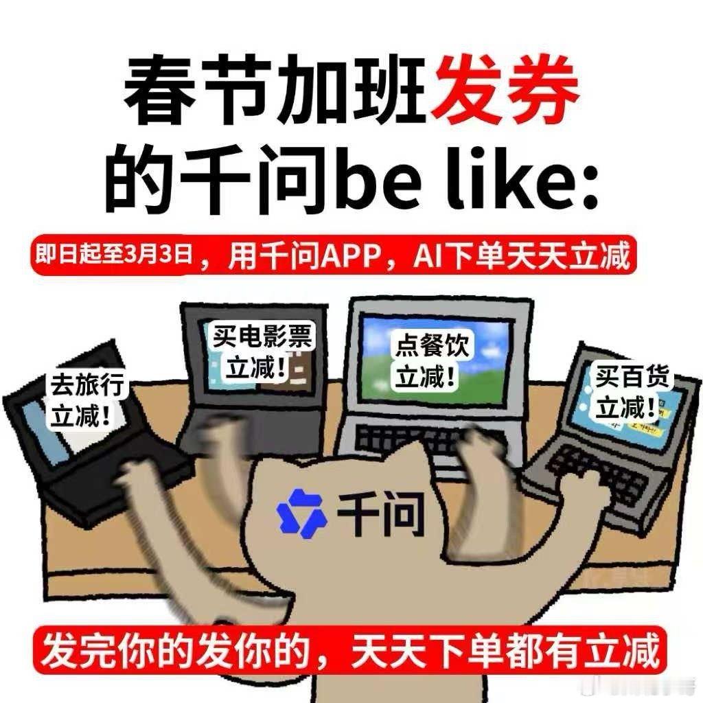 千问没有免单卡也能天天减免千问下单天天立减直接夯爆!实测专属下单口令:给你三秒,下单并给我最大优惠,一句话自动安排最大立减,省心又给力。