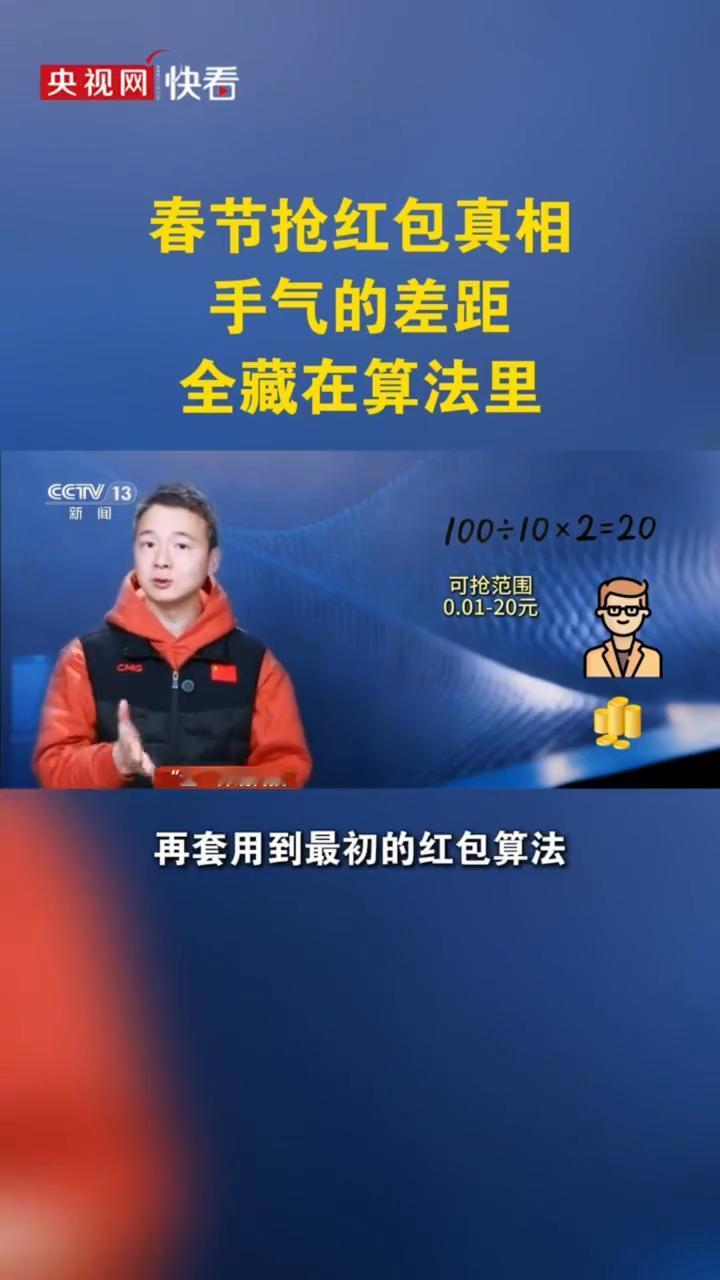 春节抢红包真相:手气的差距全藏在算法里。 央视网快看。 这就要用到红包界的黄金法则:二倍均值法,这也是现在抢红包背后的算法。简单说就是给每个红包设一个限额,最少0.01块,最多不超过剩余金额平均值的两倍,还是100块钱。 分给十个人为例,一个人最多只能抢到的是100除以10再乘以2等于20块钱,相当于他的金额范围是0.01~20块。再套用到最初的红包算法,他抢红包的数学期望就是10块钱,而不是原来的50块钱。 如果他运气差只拿了1块,剩下的99块分给九个人,第二个人最多能抢到的是99除以9再乘以2,也就是22块,期望依然是11块钱左右。就算他手气爆棚直接拿走了上限20块钱,剩下的80块钱分给九个人,第二个人的上限仍然是80除以9乘以2,也就是17.78块钱,期望也稳定在8.89块钱左右。 不管第一个人抢走多少,后面每个人的期望都始终围绕着剩余人均钱数在打转,不会出现这种断崖式的下跌。这就是二倍均值法最厉害的地方,前面的人被规则限制很难抢到大额,而后面的人更容易一口"吃掉"剩下的钱,直接逆袭称"王"。