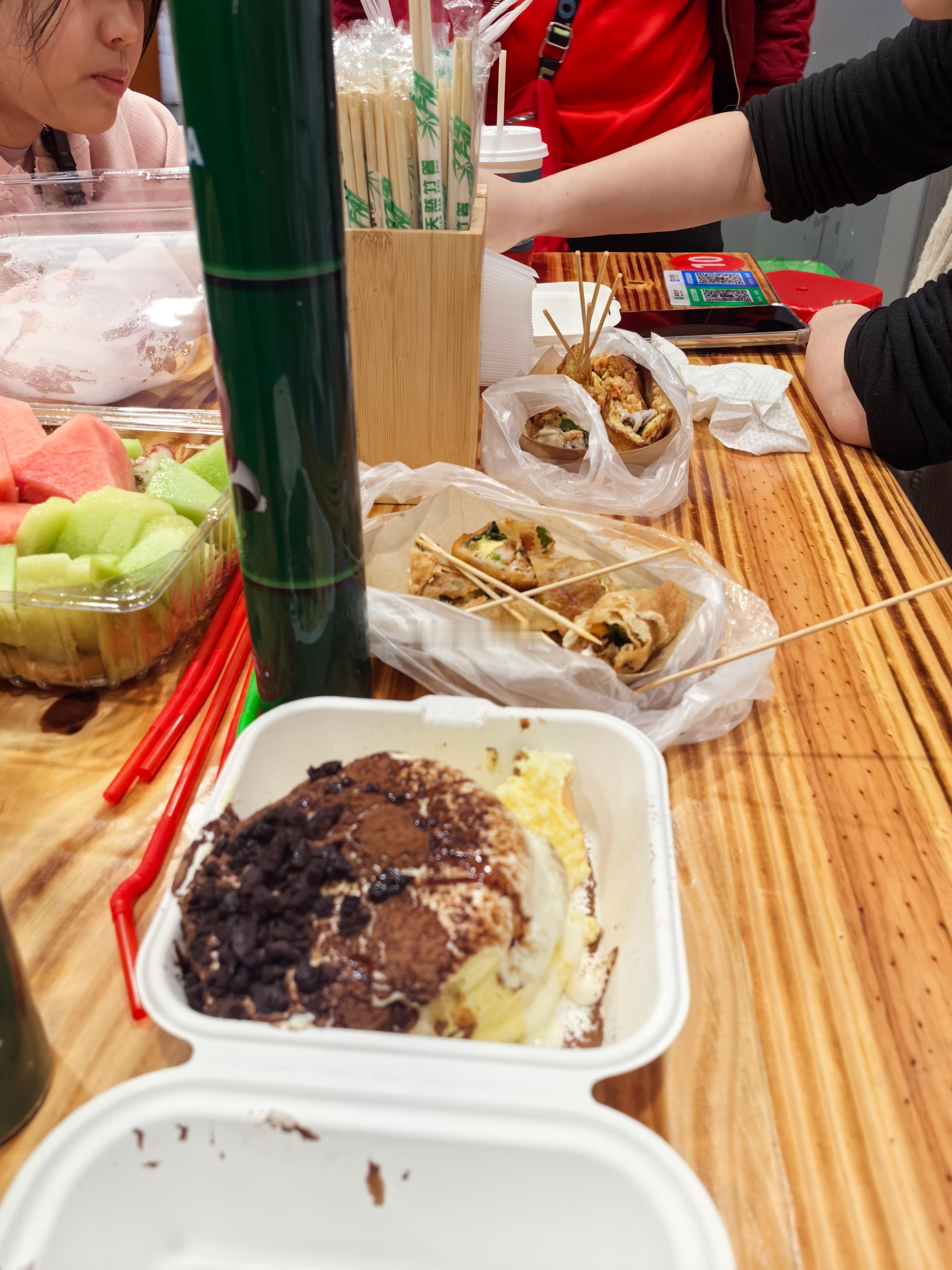 春节,八市,众“饕餮”。土笋冻、海螺烤串、“八市”舒芙蕾……也挑战了“片仔癀草”甘蔗汁,蛮好喝的,青草味十足。 厦门·八市