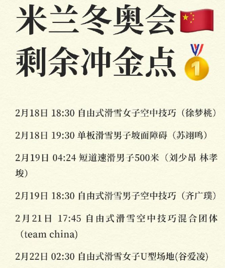 中国队还有夺金点吗?当然有,而且还有6个,他们分别是: