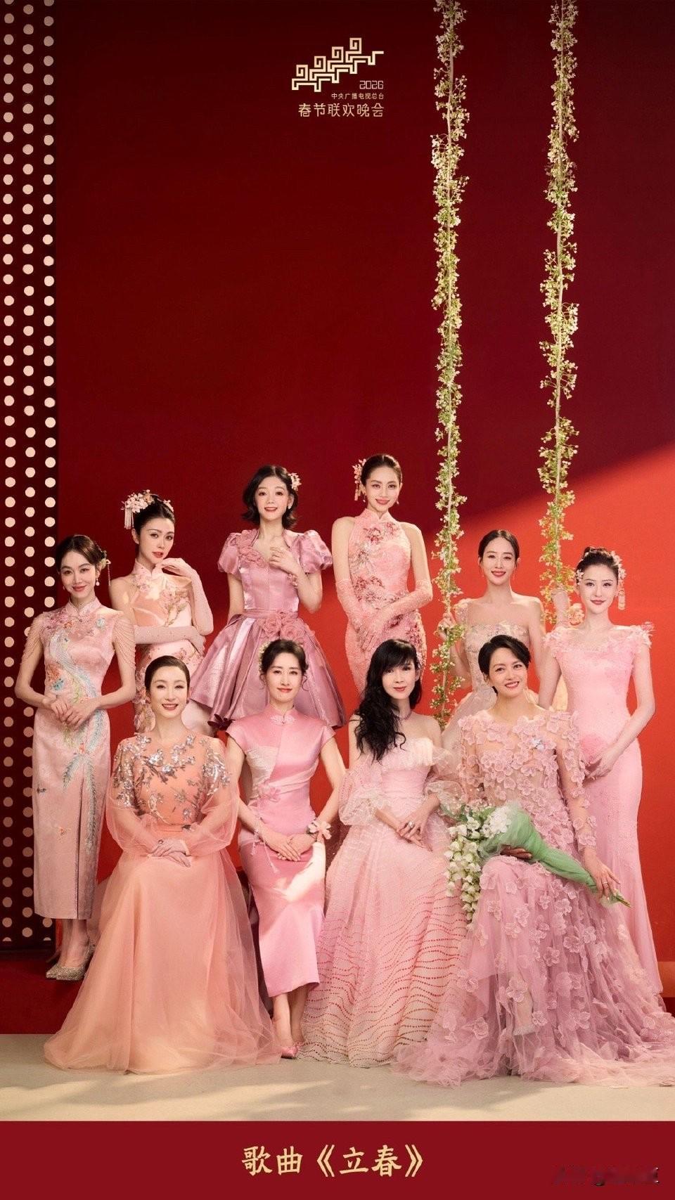 这十位同台简直是“视觉盛宴”, 每个人的美都各有千秋! 确实,梁咏琪的状态真的太能打了。站在人群里,那种高挑舒展的气质加上冻龄的颜值,完全看不出岁月痕迹,一开口还是熟悉的味道,太让人惊喜了。 周慧敏哪怕有了年龄感,那份“玉女掌门人”的经典韵味还在,这就是情怀杀啊,你老公肯定看得很入迷。姜妍的身材管理确实绝,在一众美女里也格外抢眼,线条太养眼了。薛凯琪的娃娃脸也是“作弊”级别的,满满的少女感。 还有秦海璐,正如你所说,越成熟越有味道,那种从容淡定的大女主气场,在舞台上特别有辨识度。 至于另外几位——刘敏涛的表情管理一向在线,自带一种飒爽的春意;张钧甯和热依扎都是气质挂,温婉又大气;刘惜君和希林娜依·高虽然是歌手出身,但在这个舞台上颜值和状态也完全没输,融入得特别好。 这满屏的粉色系造型搭配翠绿舞美,真的把“春意盎然”拿捏住了,很难不被打动啊!