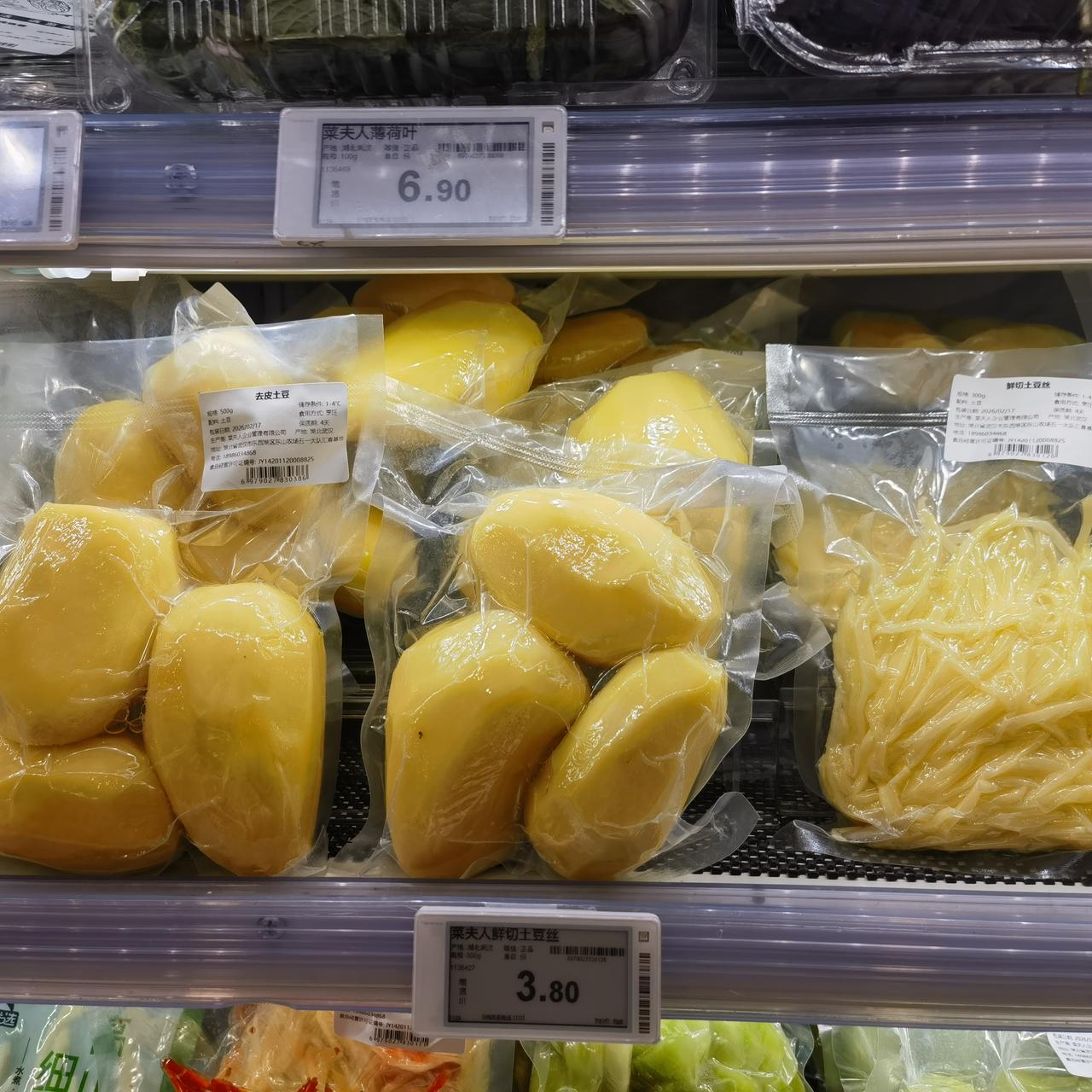 只要你有钱,自己在家做菜很方便!逛武商发现很多蔬菜半成品,切好的土豆、莴苣、胡萝