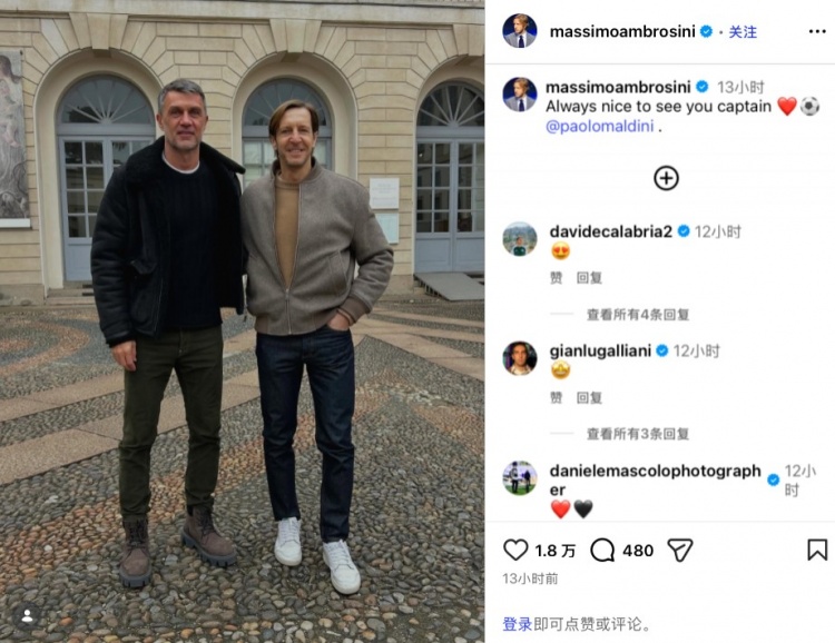 直播吧2月17日讯今日,安布罗西尼更新社媒,晒出了与米兰传奇马尔蒂尼的合影。