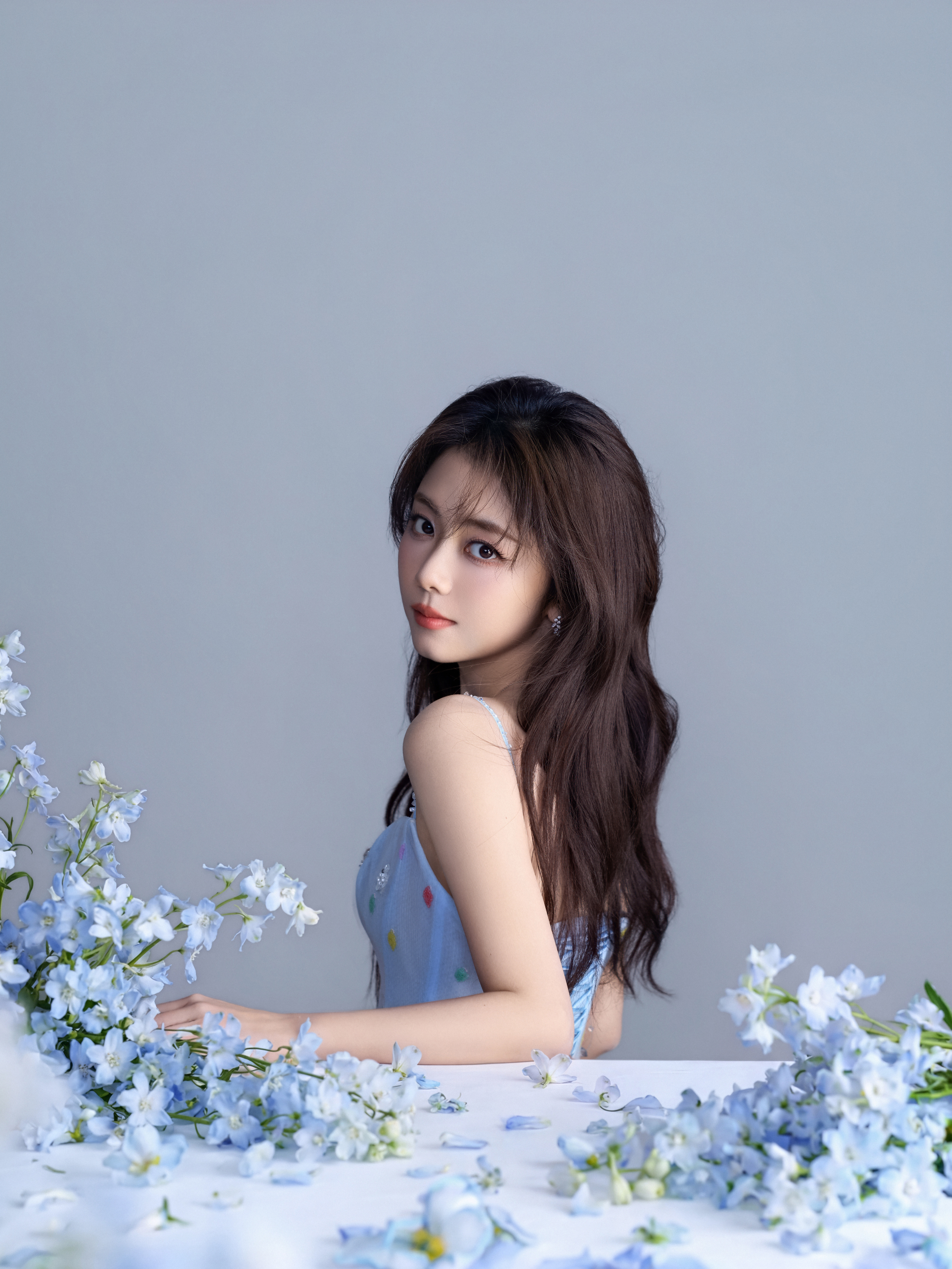 谭松韵2026百花迎春 一池春水,映衬如花笑靥;百花枝头,诉说迎春浪漫两小姐一袭淡蓝轻纱,携满身春意,轻盈出发。赴一场少年之约,看百花盛放🌸