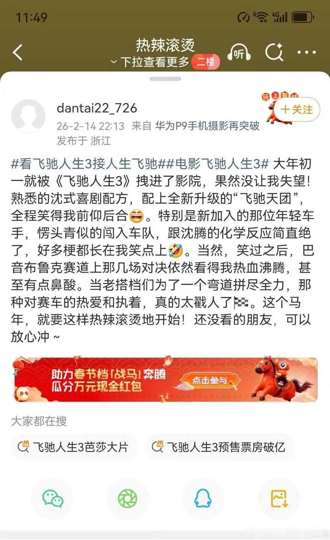飞驰人生3的口碑 口碑炸场!没有多余废话,只有纯粹的速度与热爱,大银幕看赛道飞驰太过瘾!