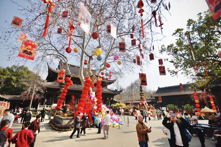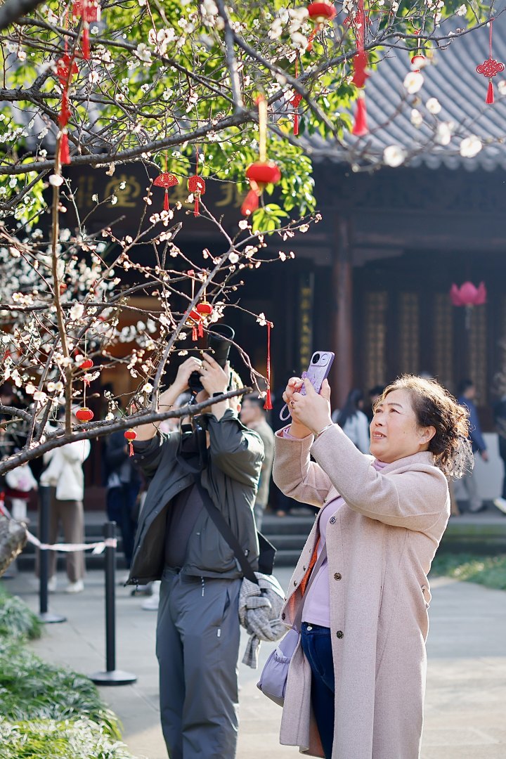 当天,春晚节目《贺花神》的后劲仍在,不少人早早来到钱王祠赶花事。