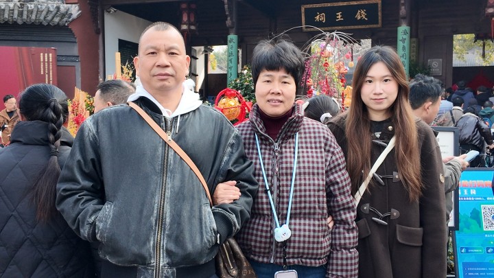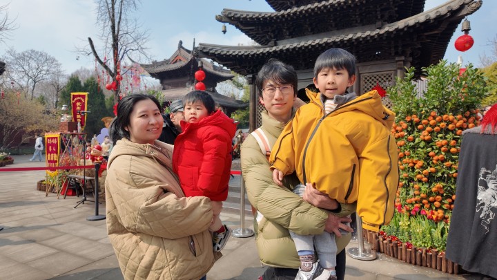 一家四口是杭州本地人,每年正月都喜欢出门走走,今年选择了钱王祠,是为了让兄弟俩感受新年的热闹氛围。