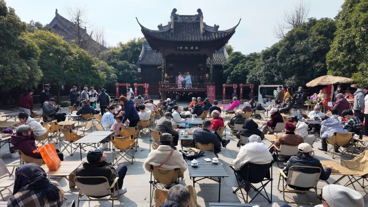 玩累了,钱王祠还提供围炉煮茶、听戏聊曲的地方。