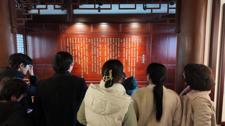 在钱王祠,刻了《钱氏家训》的一面墙前围满了人。