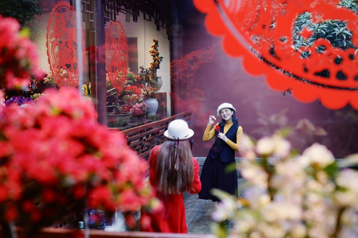 游玩路线是她女儿做的攻略,“最近网上很多人推荐钱王祠,我们一看到门口的花艺作品就走不动路了。”