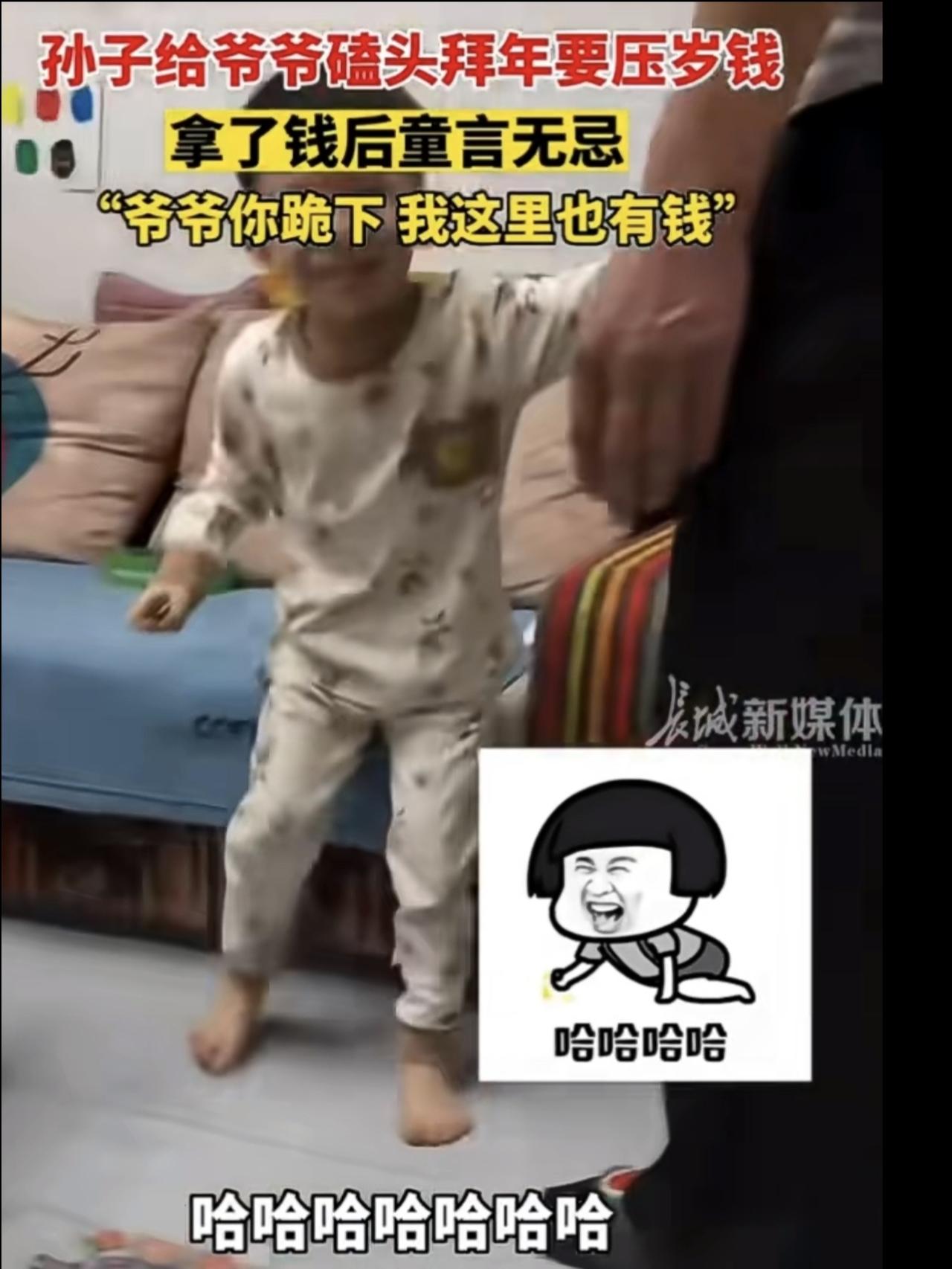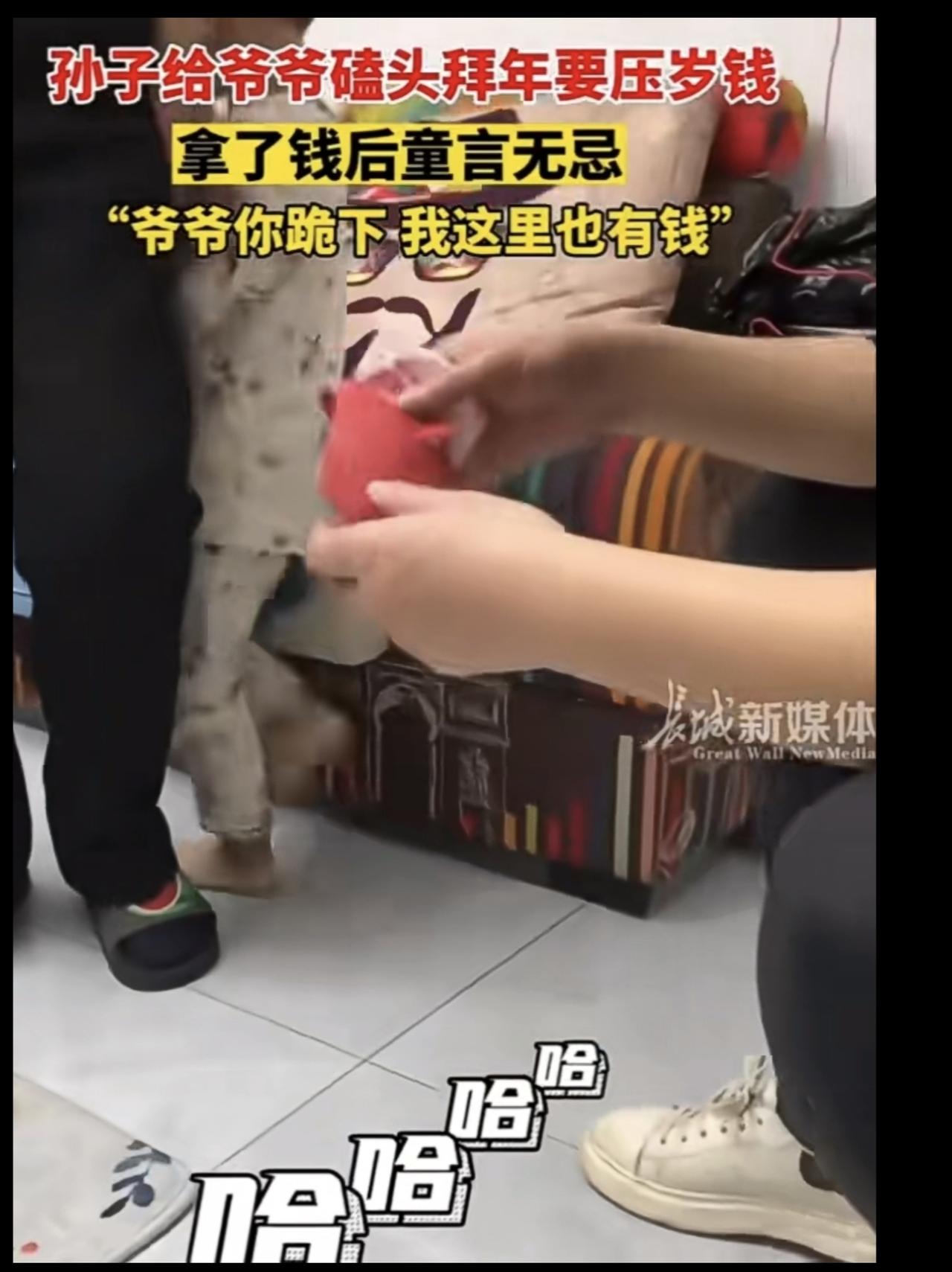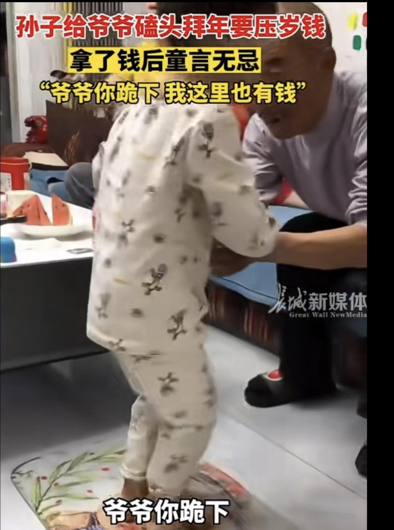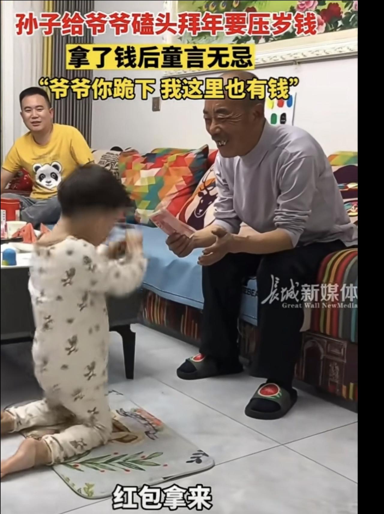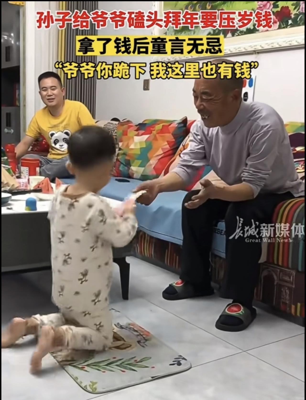 河北:磕头拜年就有压岁钱,孙子:爷爷你也跪下~(来源:长城新媒体)